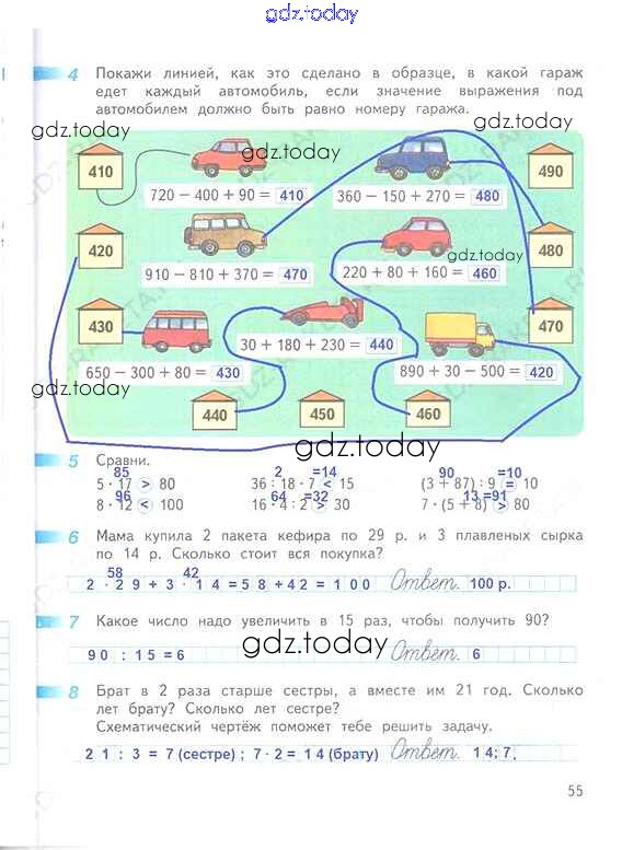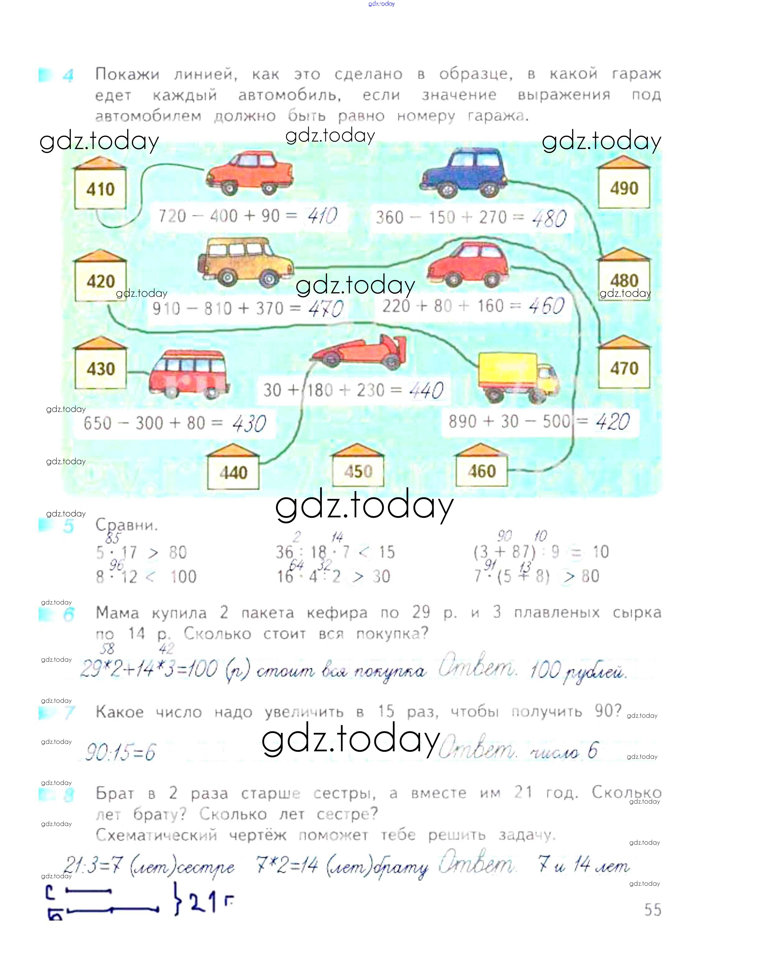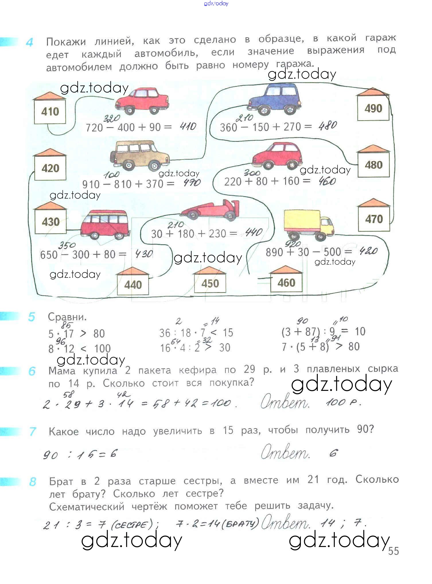 Ответы к Решение к части2. Страницы 55 Рабочей тетради по Математике для 3 класса Дорофеев, Миракова Просвещение Перспектива 2017