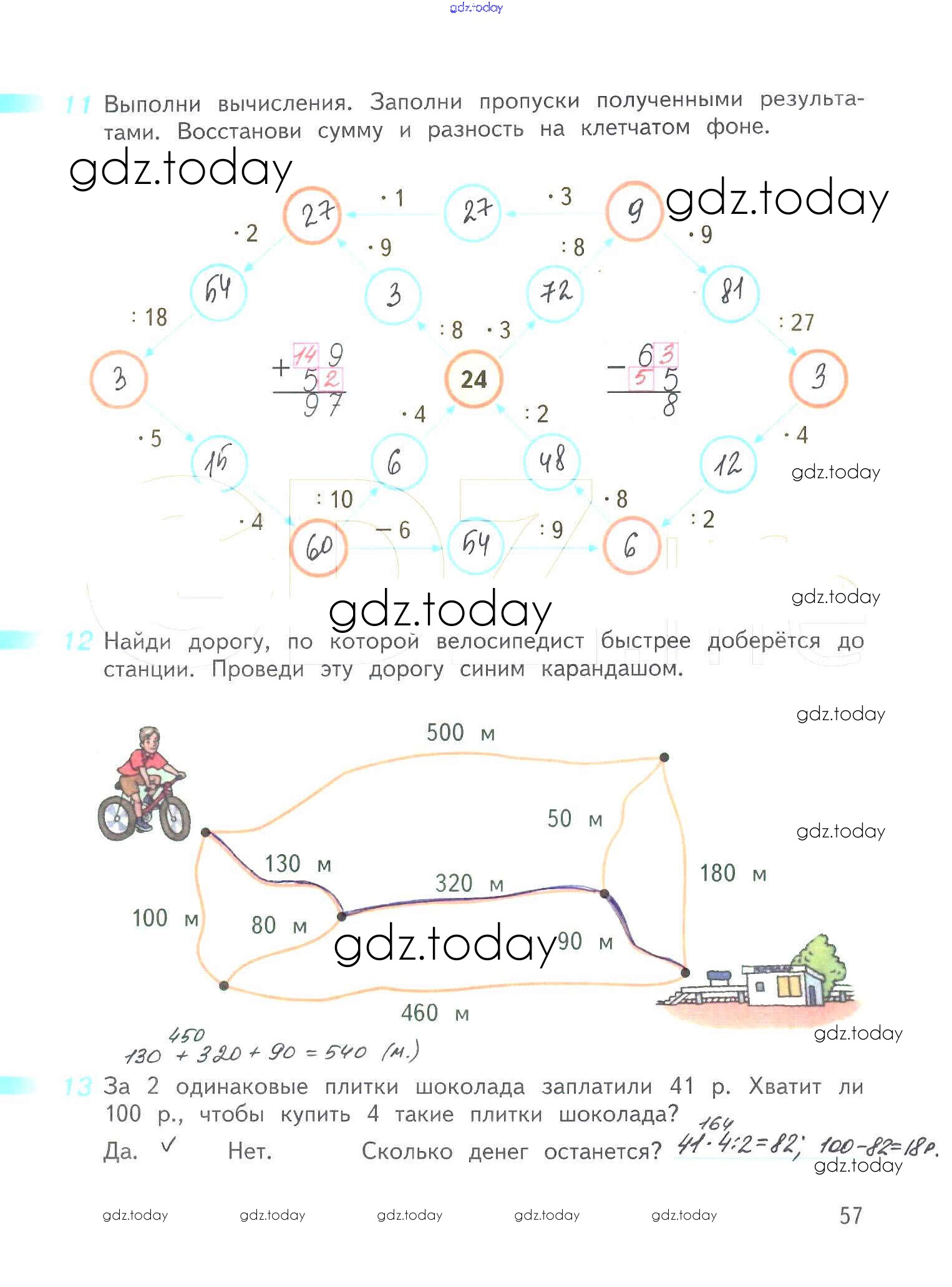 Ответы к Решение к части2. Страницы 57 Рабочей тетради по Математике для 3 класса Дорофеев, Миракова Просвещение Перспектива 2017