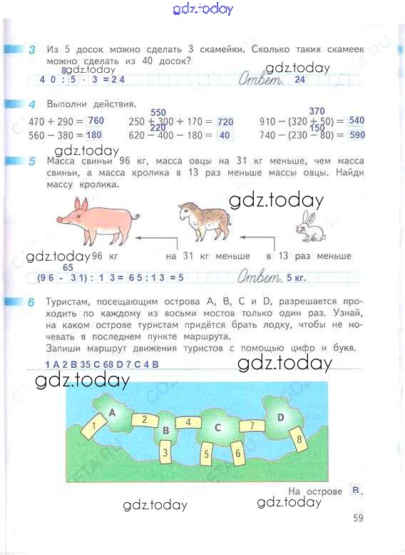 Ответы к Решение к части2. Страницы 59 Рабочей тетради по Математике для 3 класса Дорофеев, Миракова Просвещение Перспектива 2017