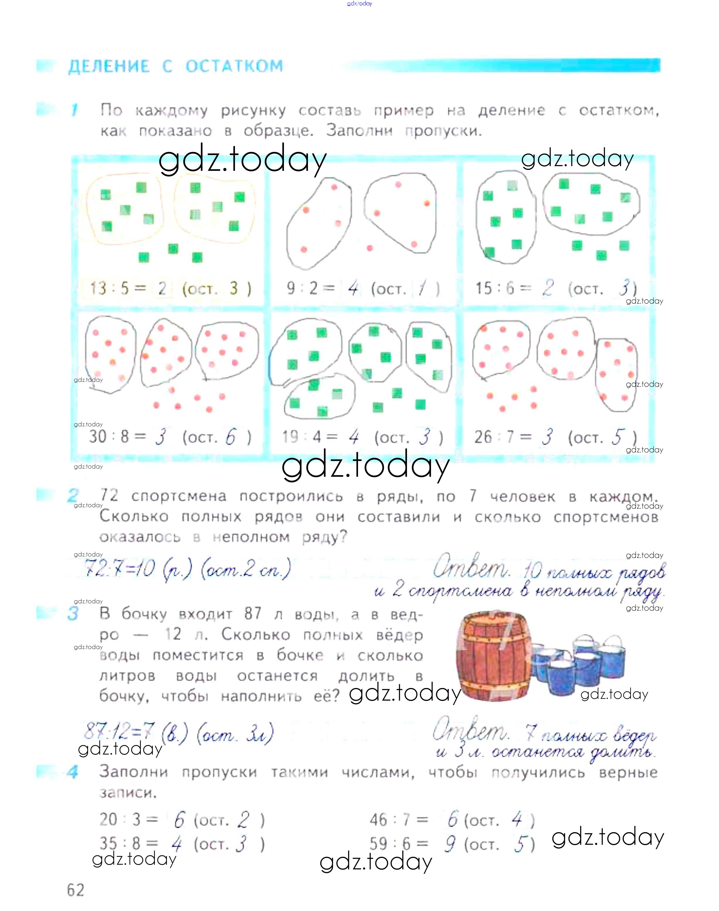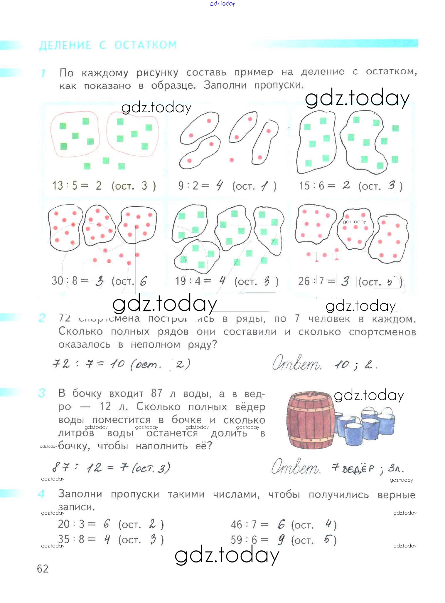 На страницах сайта gdz.today вы найдете учебный и вспомогательный материал, направленный на улучшения знаний школьной программы. ГДЗ - онлайн мир знаний Решение к части2. Страницы 62 Рабочей тетради по Математике для 3 класса Дорофеев, Миракова Просвещение Перспектива 2017