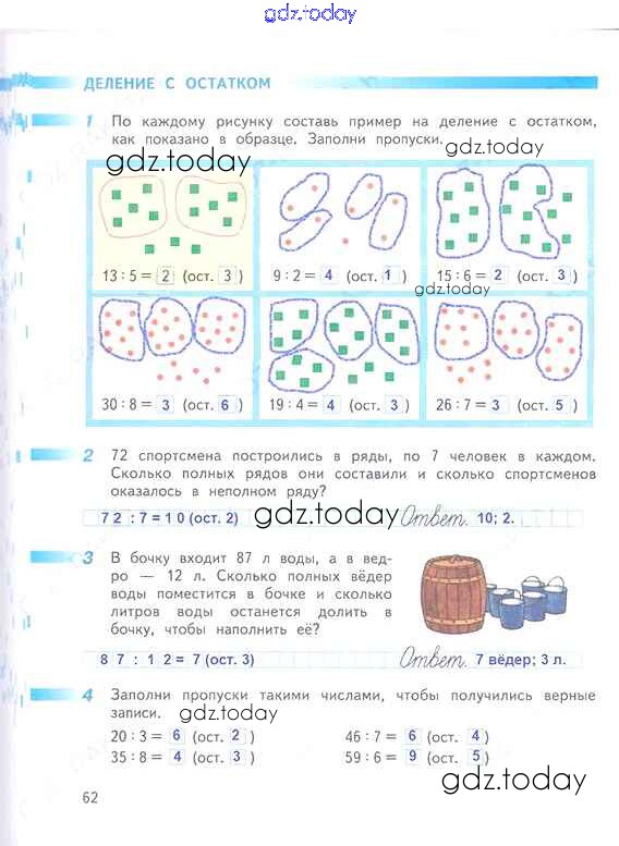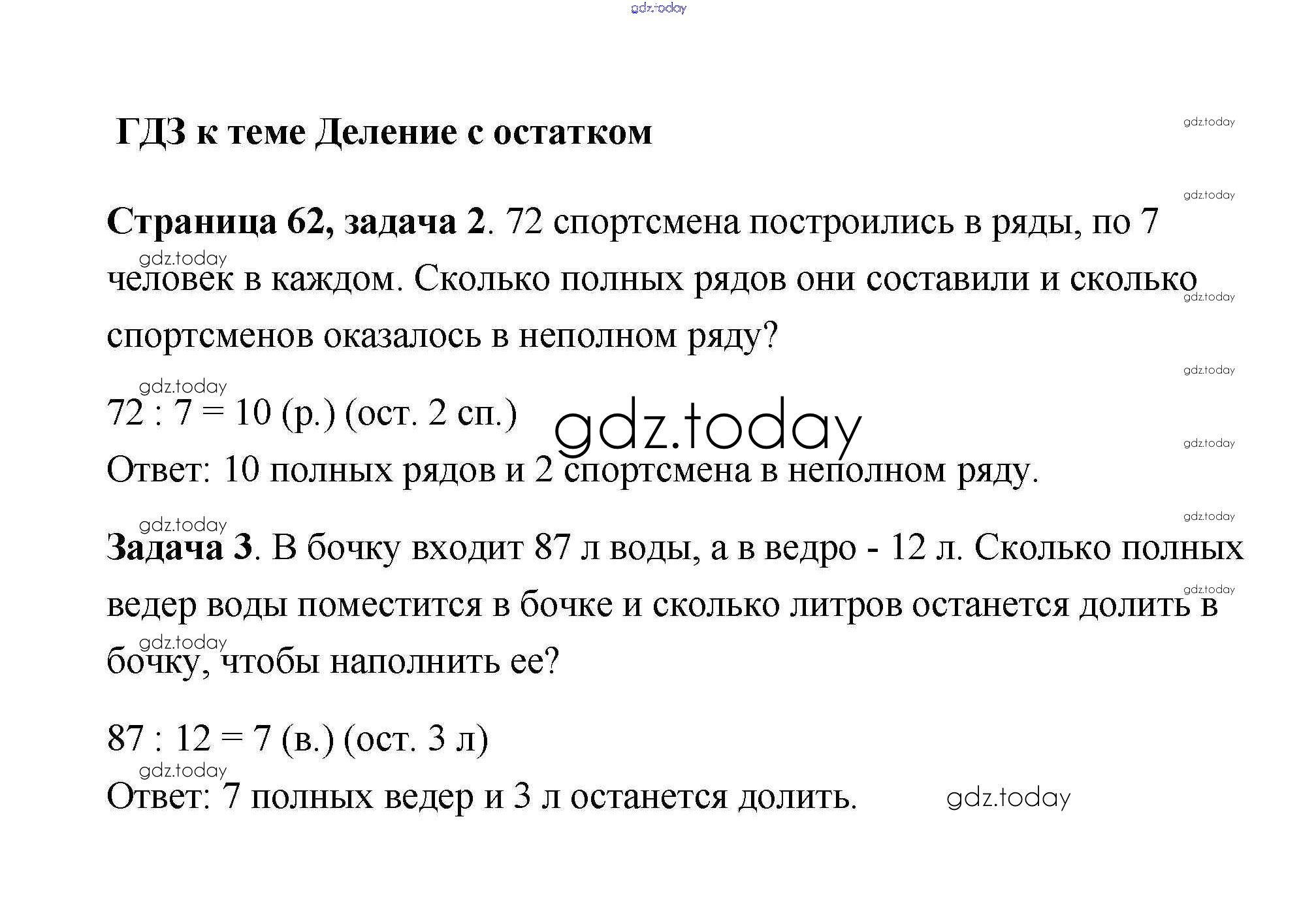 Ответы к Решение к части2. Страницы 62 Рабочей тетради по Математике для 3 класса Дорофеев, Миракова Просвещение Перспектива 2017