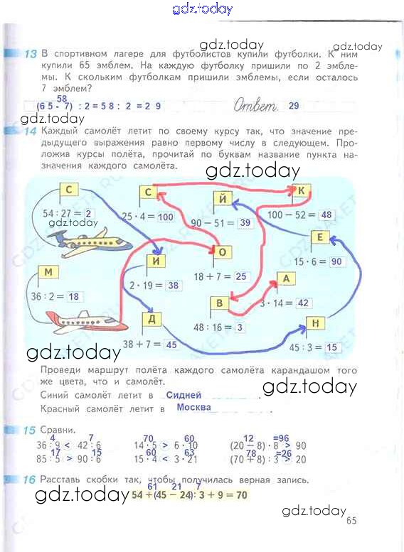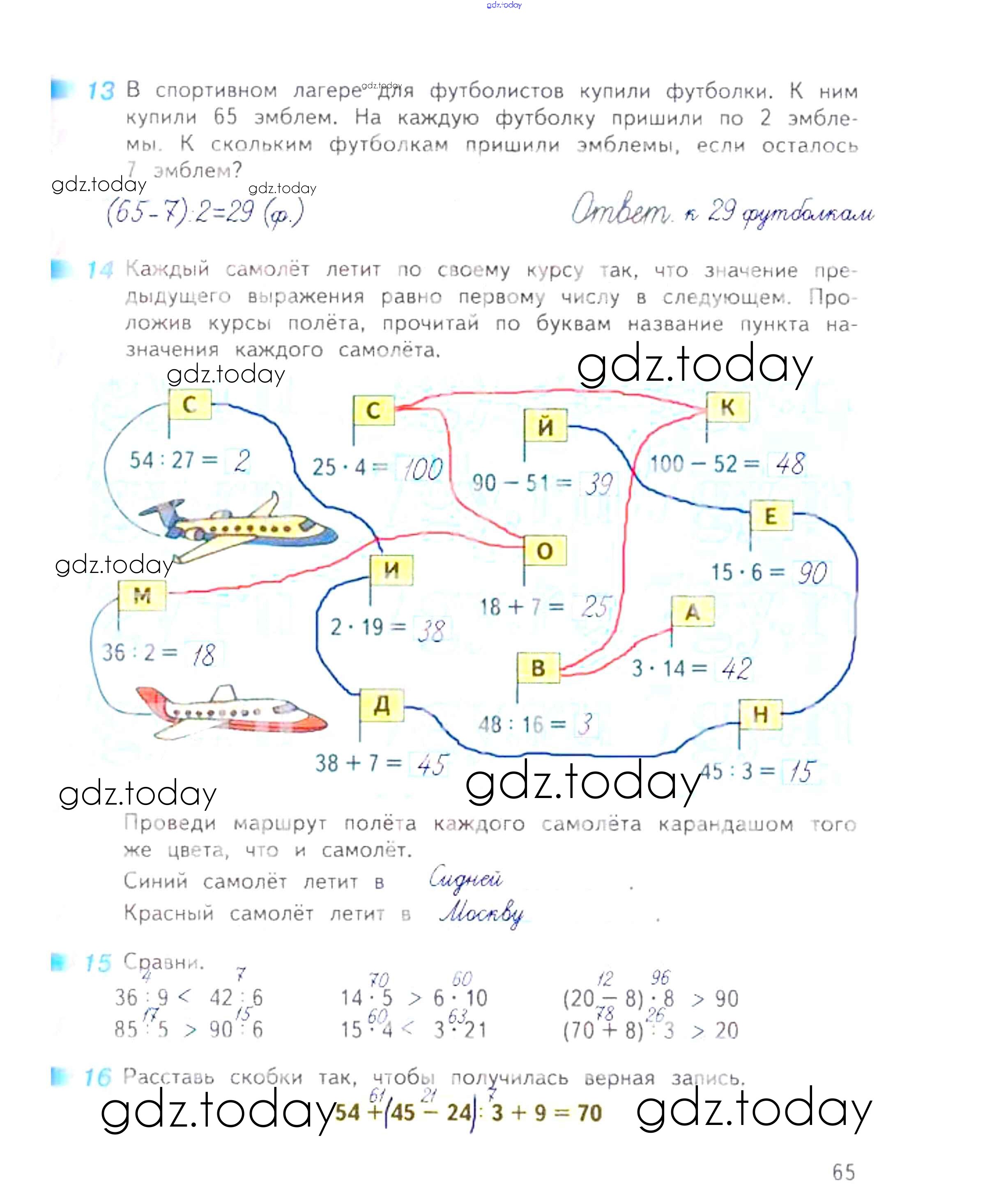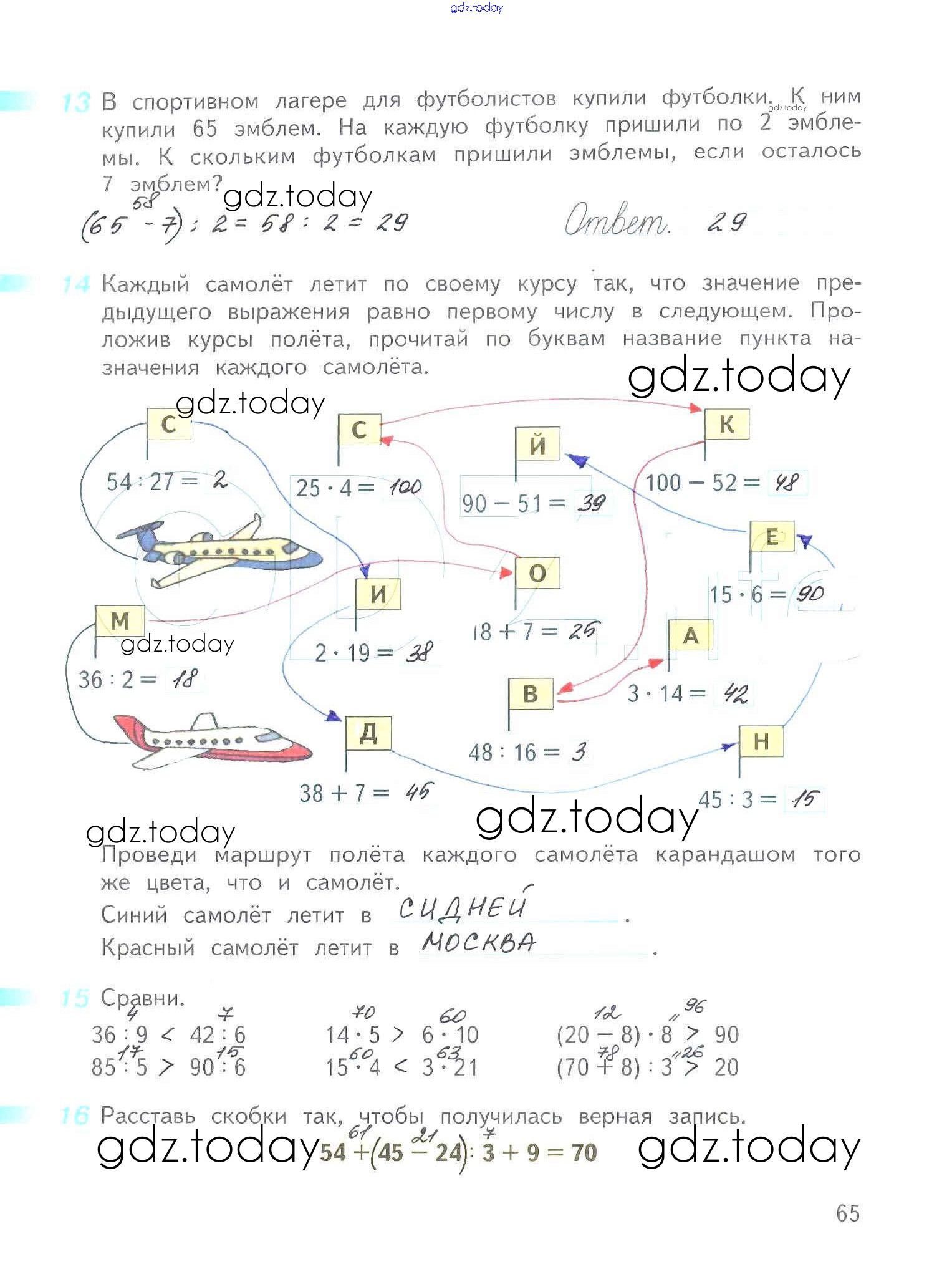 Ответы к Решение к части2. Страницы 65 Рабочей тетради по Математике для 3 класса Дорофеев, Миракова Просвещение Перспектива 2017
