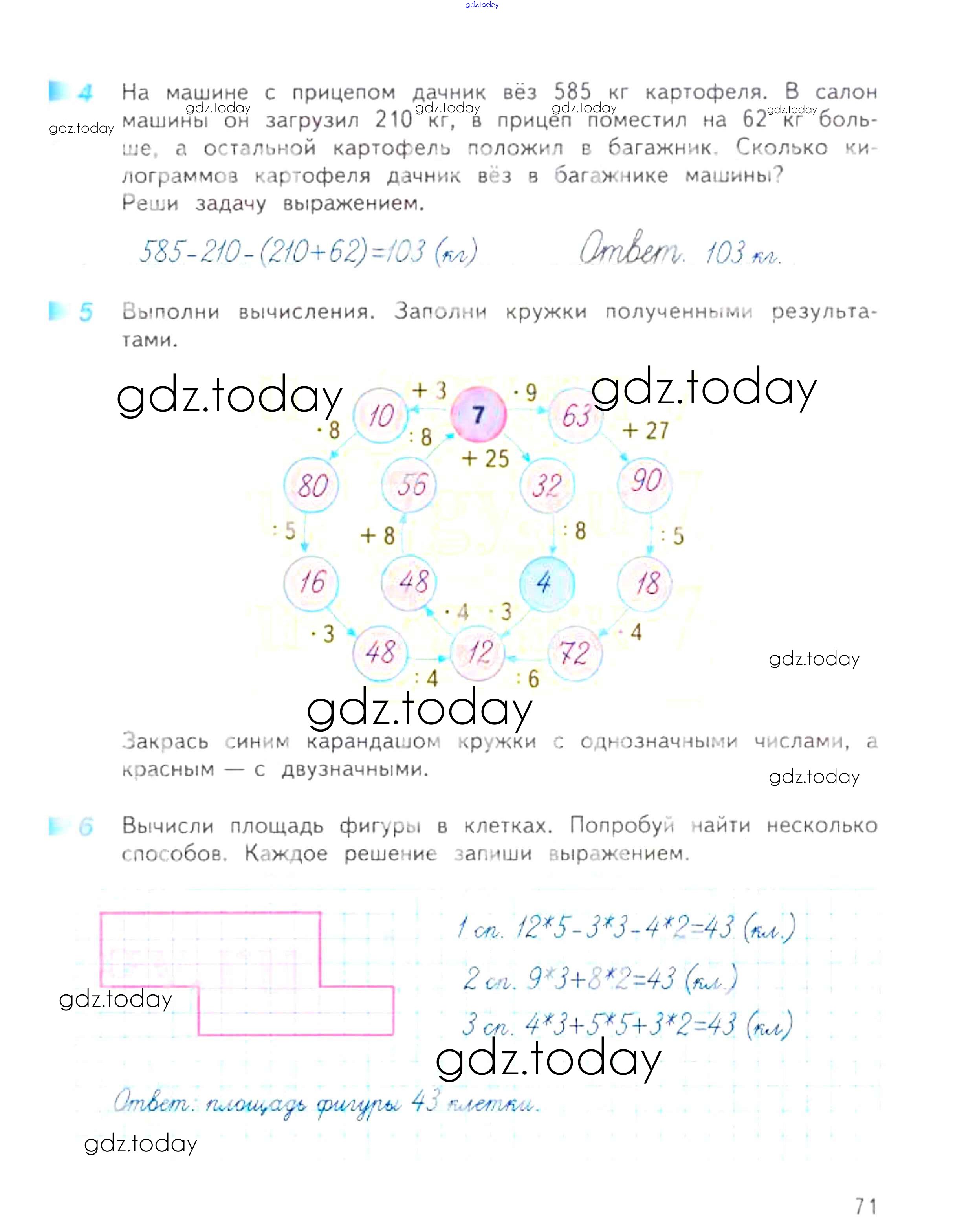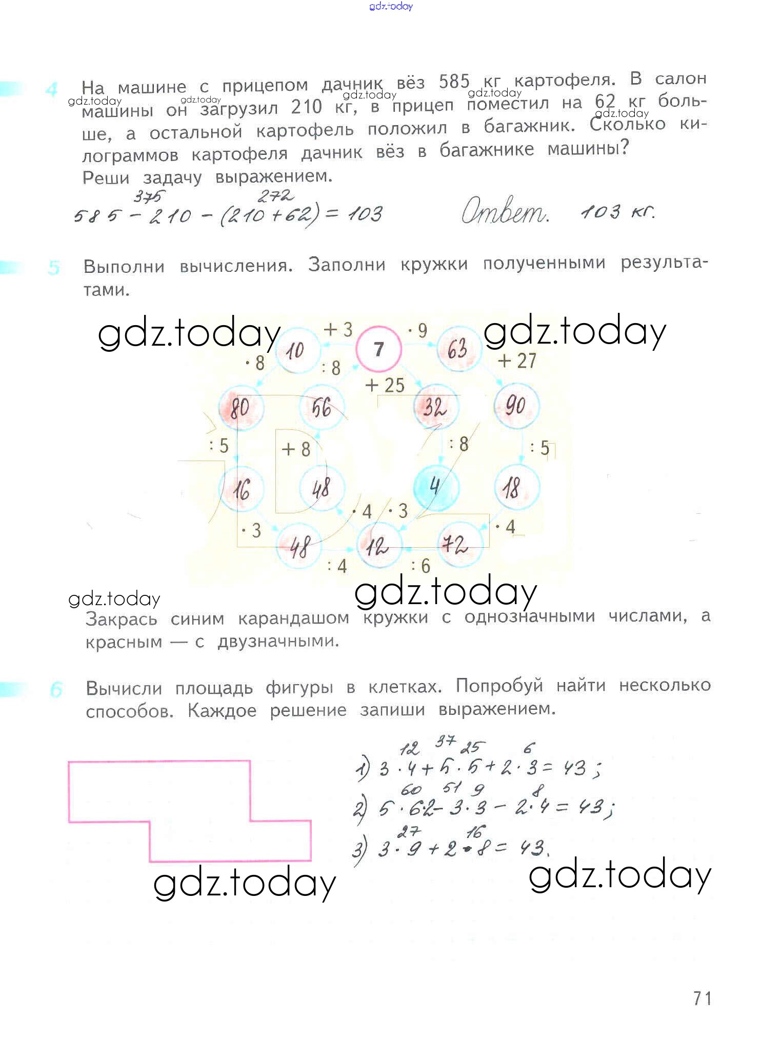 Ответы к Решение к части2. Страницы 71 Рабочей тетради по Математике для 3 класса Дорофеев, Миракова Просвещение Перспектива 2017