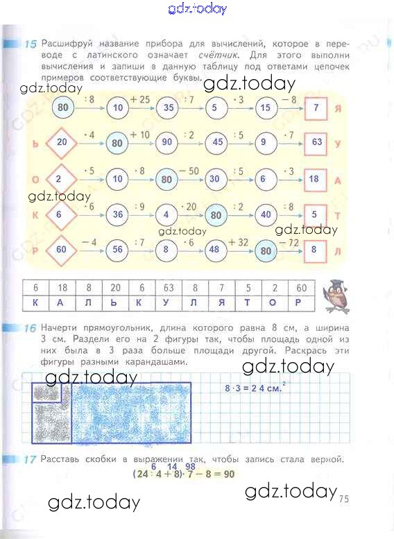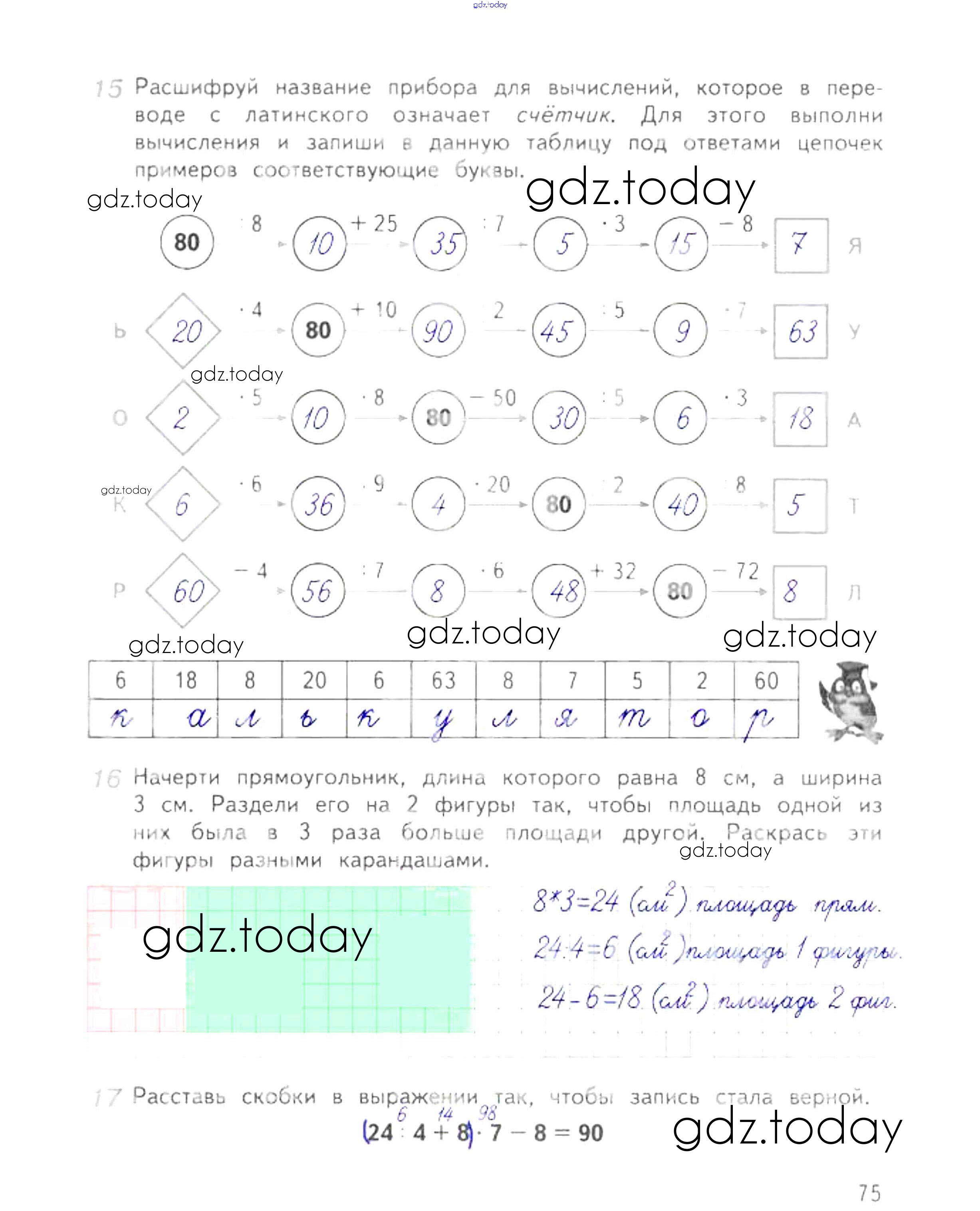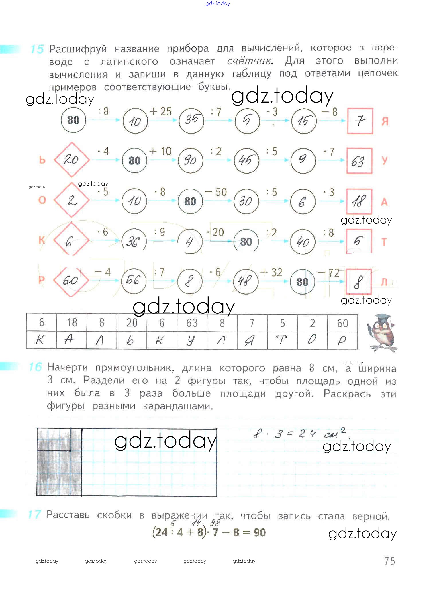 Ответы к Решение к части2. Страницы 75 Рабочей тетради по Математике для 3 класса Дорофеев, Миракова Просвещение Перспектива 2017