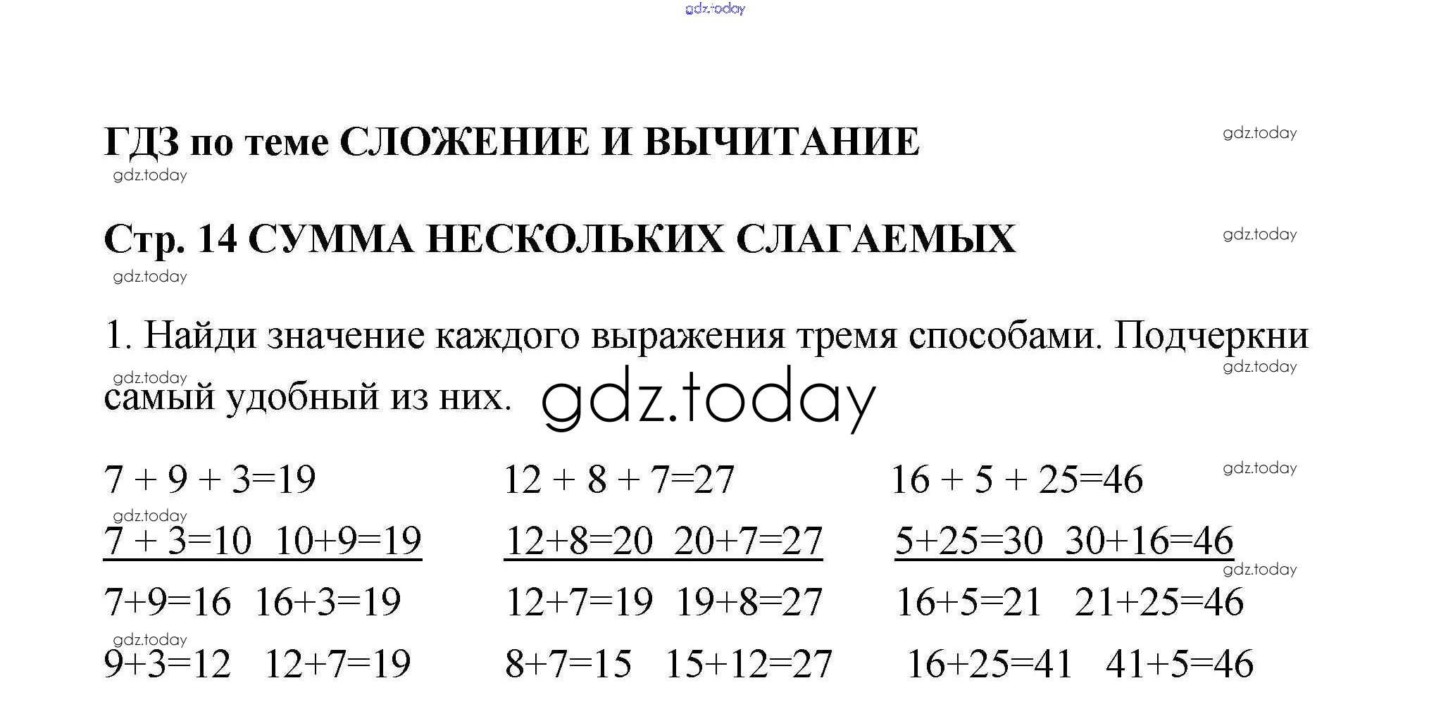 На страницах сайта gdz.today вы найдете учебный и вспомогательный материал, направленный на улучшения знаний школьной программы. ГДЗ - онлайн мир знаний Страница 14 Решение к части 1 1 Учебнику по Математике для 3 класса Дорофеев, Миракова Просвещение 2015