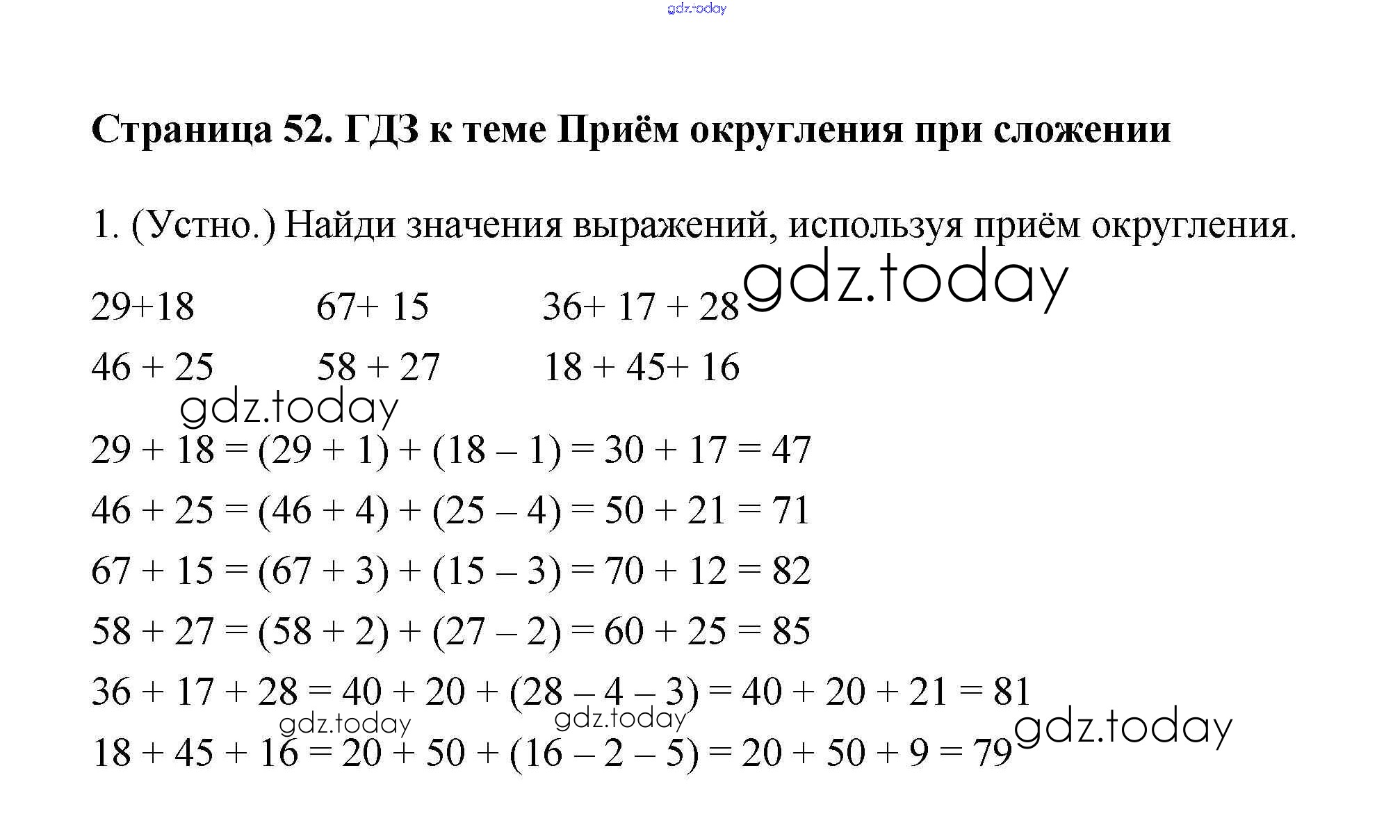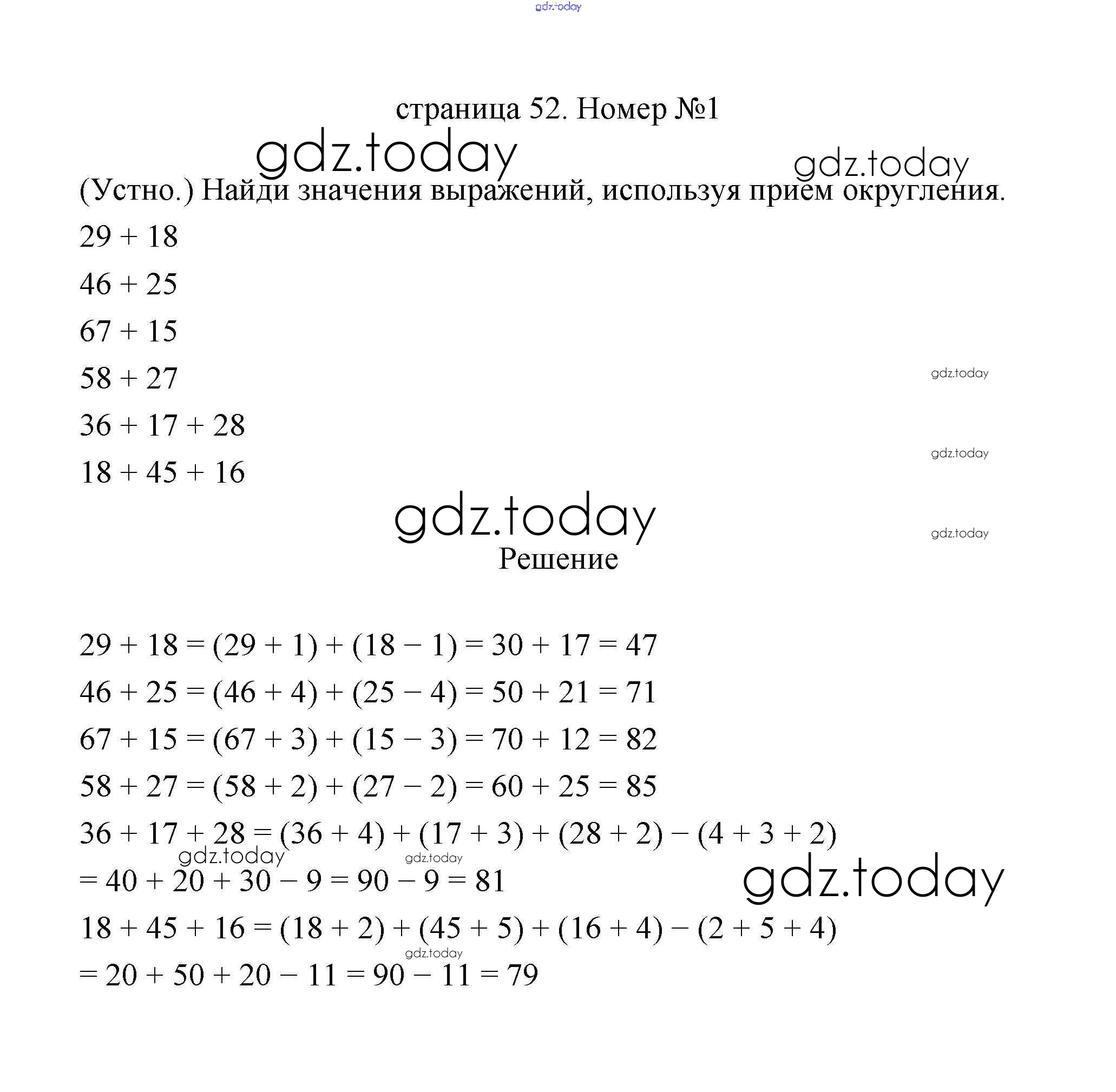 На страницах сайта gdz.today вы найдете учебный и вспомогательный материал, направленный на улучшения знаний школьной программы. ГДЗ - онлайн мир знаний Страница 52 Решение к части 1 1 Учебнику по Математике для 3 класса Дорофеев, Миракова Просвещение 2015