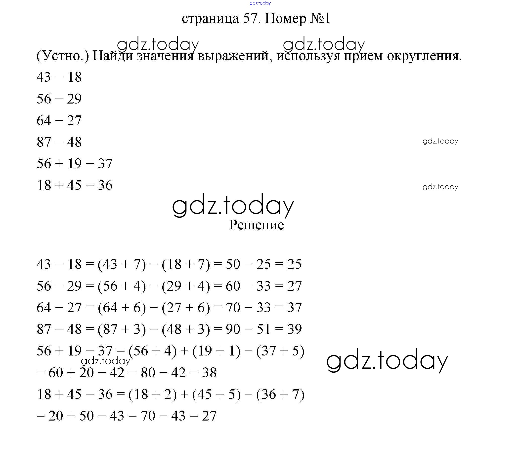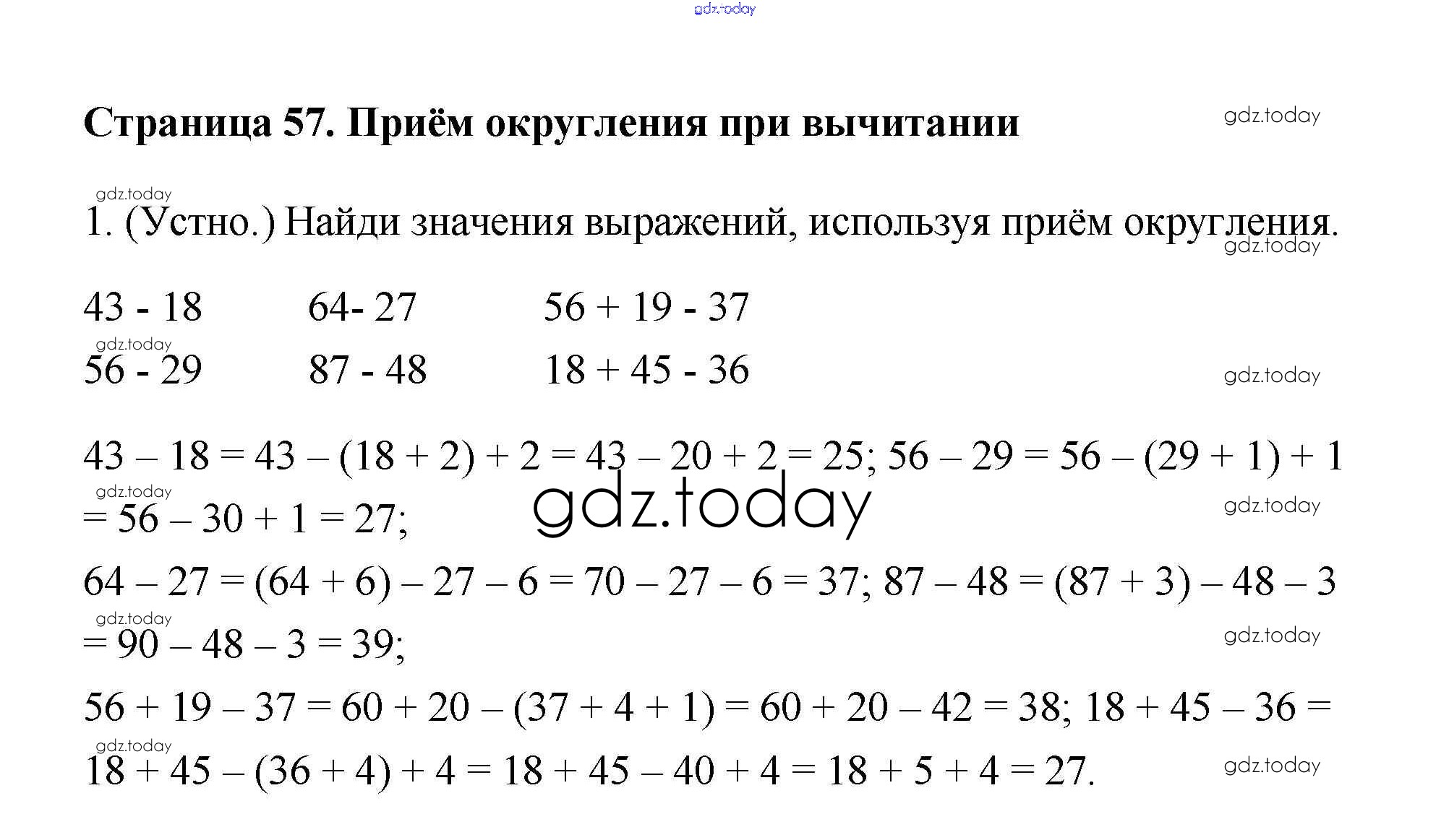 На страницах сайта gdz.today вы найдете учебный и вспомогательный материал, направленный на улучшения знаний школьной программы. ГДЗ - онлайн мир знаний Страница 57 Решение к части 1 1 Учебнику по Математике для 3 класса Дорофеев, Миракова Просвещение 2015