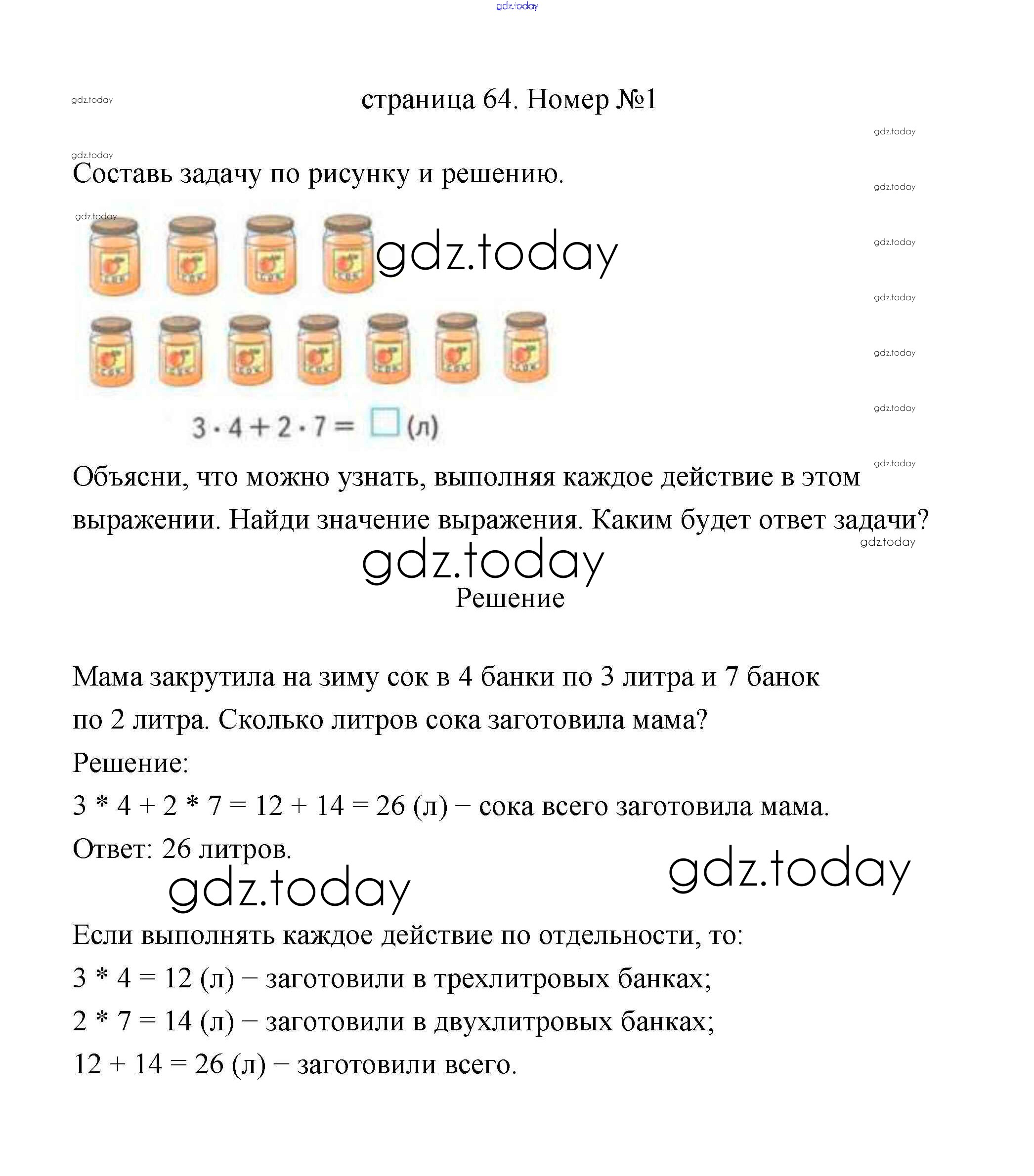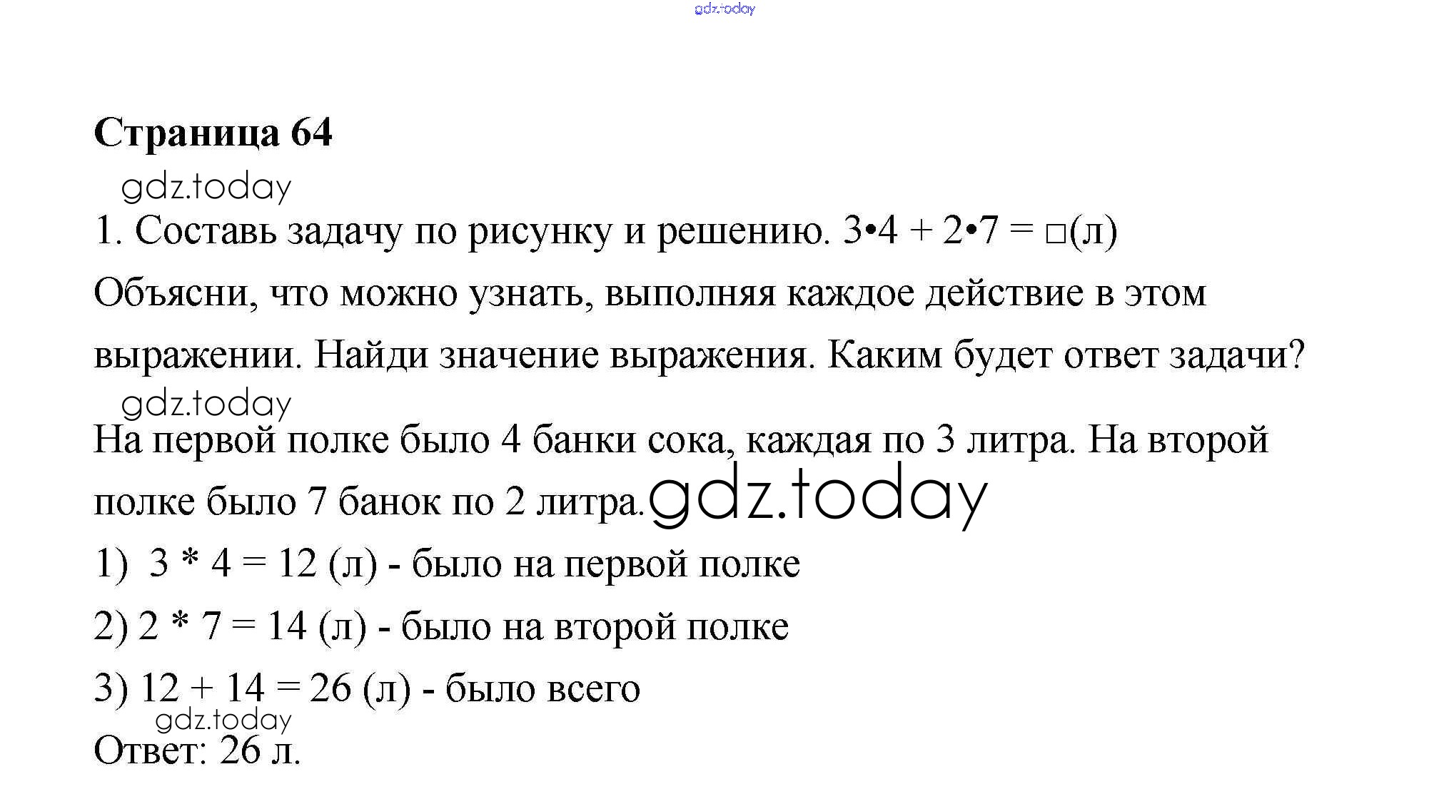Ответы к Страница 64 Решение к части 1 1 Учебнику по Математике для 3 класса Дорофеев, Миракова Просвещение 2015
