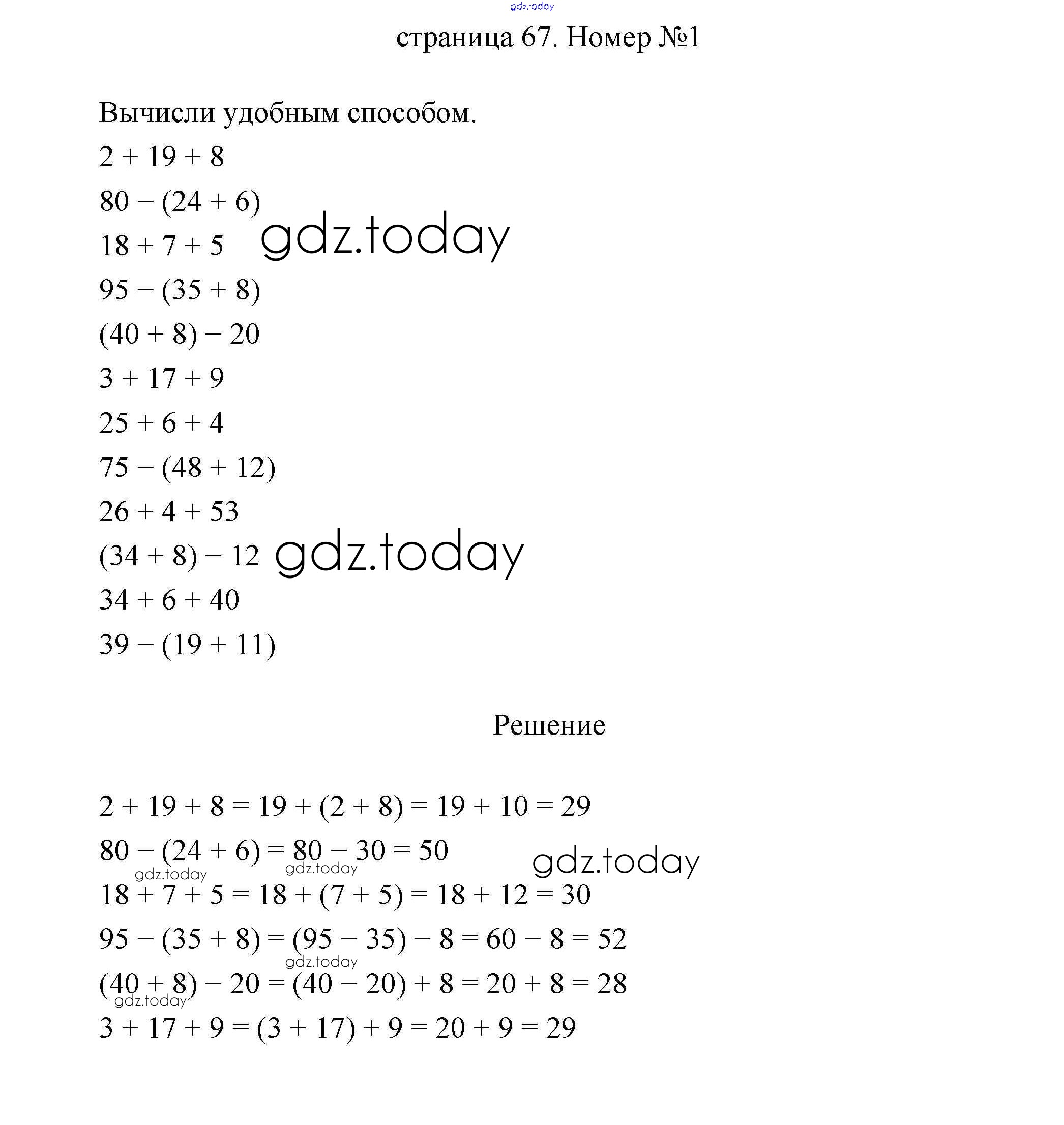 Ответы к Страница 67 Решение к части 1 1 Учебнику по Математике для 3 класса Дорофеев, Миракова Просвещение 2015