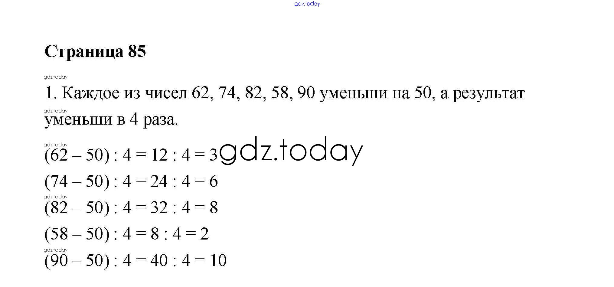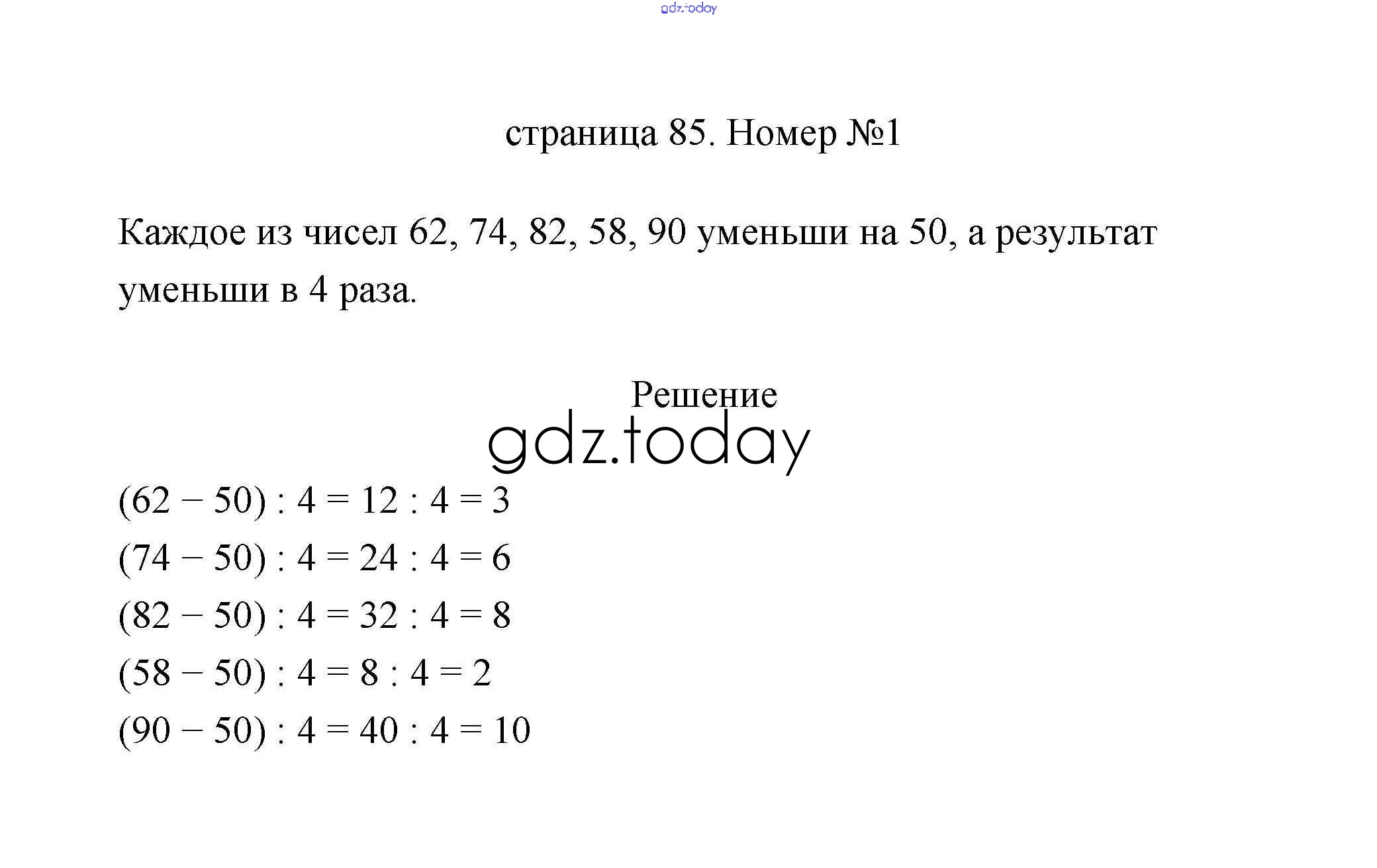 Ответы к Страница 85 Решение к части 1 1 Учебнику по Математике для 3 класса Дорофеев, Миракова Просвещение 2015