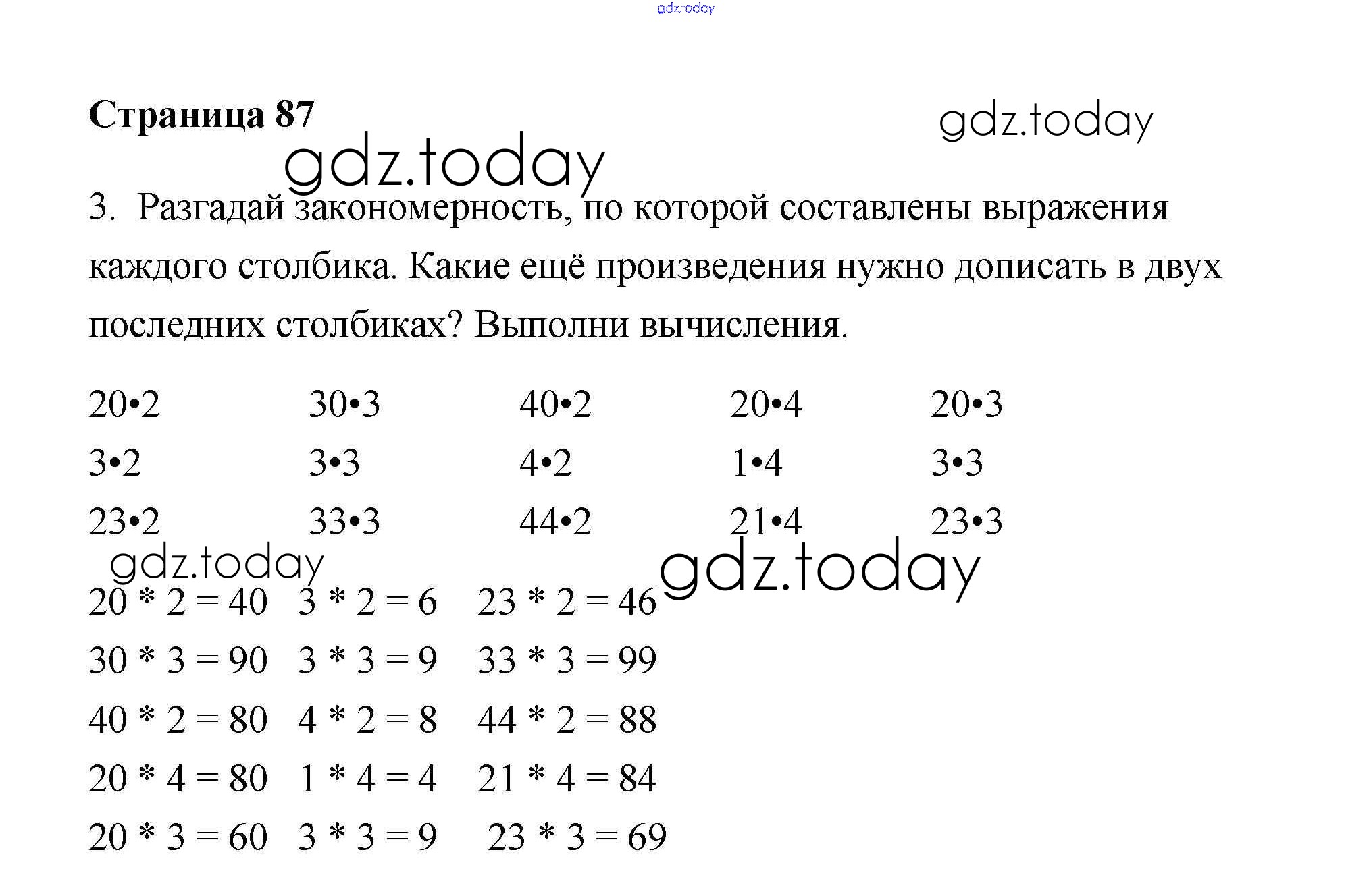 На страницах сайта gdz.today вы найдете учебный и вспомогательный материал, направленный на улучшения знаний школьной программы. ГДЗ - онлайн мир знаний Страница 87 Решение к части 1 3 Учебнику по Математике для 3 класса Дорофеев, Миракова Просвещение 2015