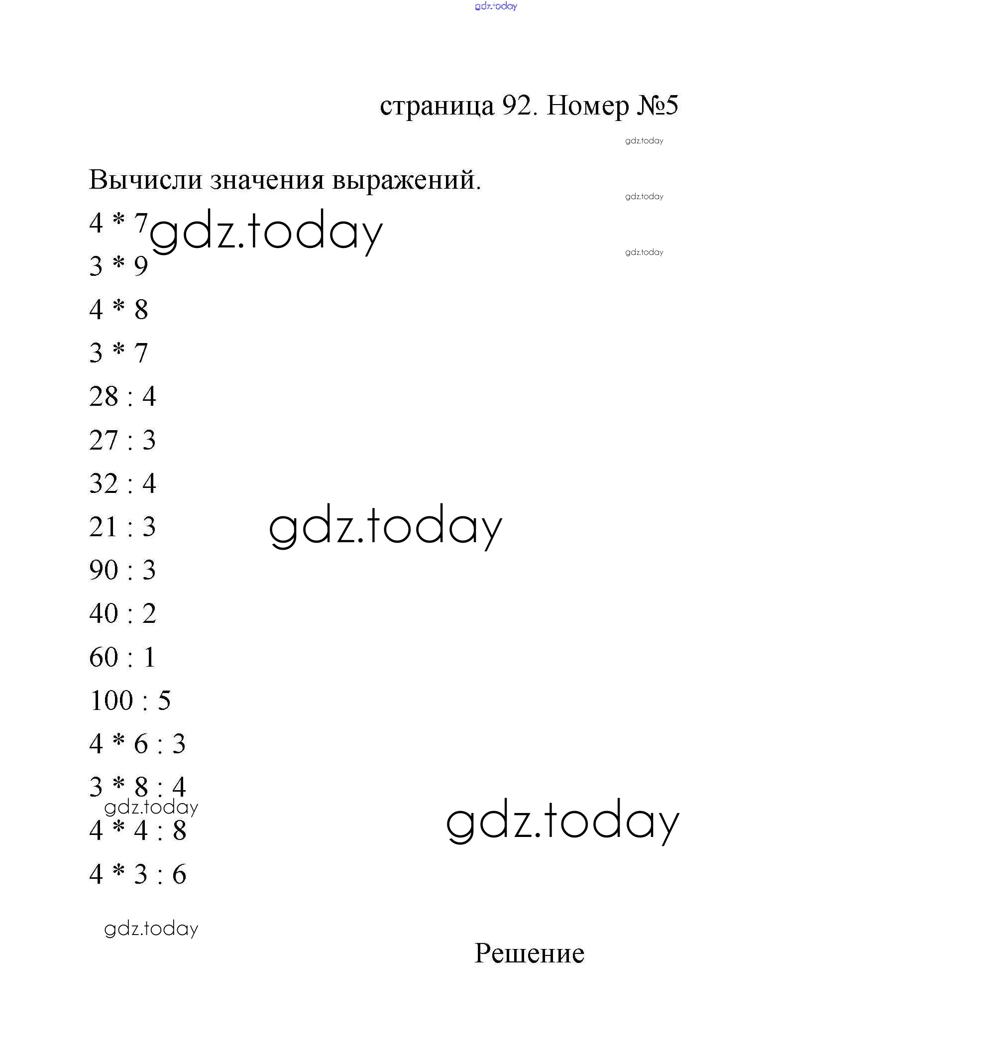 На страницах сайта gdz.today вы найдете учебный и вспомогательный материал, направленный на улучшения знаний школьной программы. ГДЗ - онлайн мир знаний Страница 92 Решение к части 1 5 Учебнику по Математике для 3 класса Дорофеев, Миракова Просвещение 2015