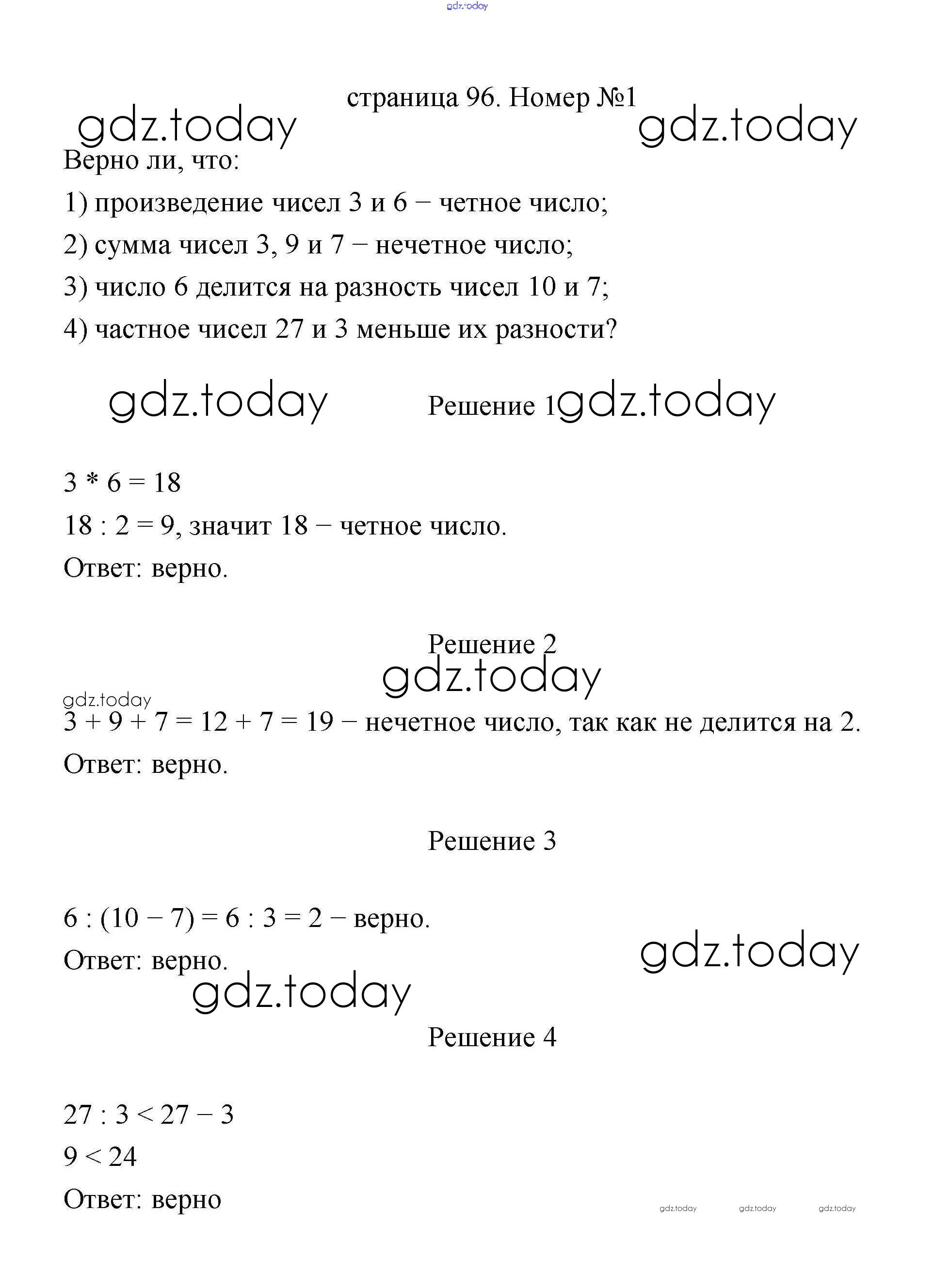Ответы к Страница 96 Решение к части 1 1 Учебнику по Математике для 3 класса Дорофеев, Миракова Просвещение 2015