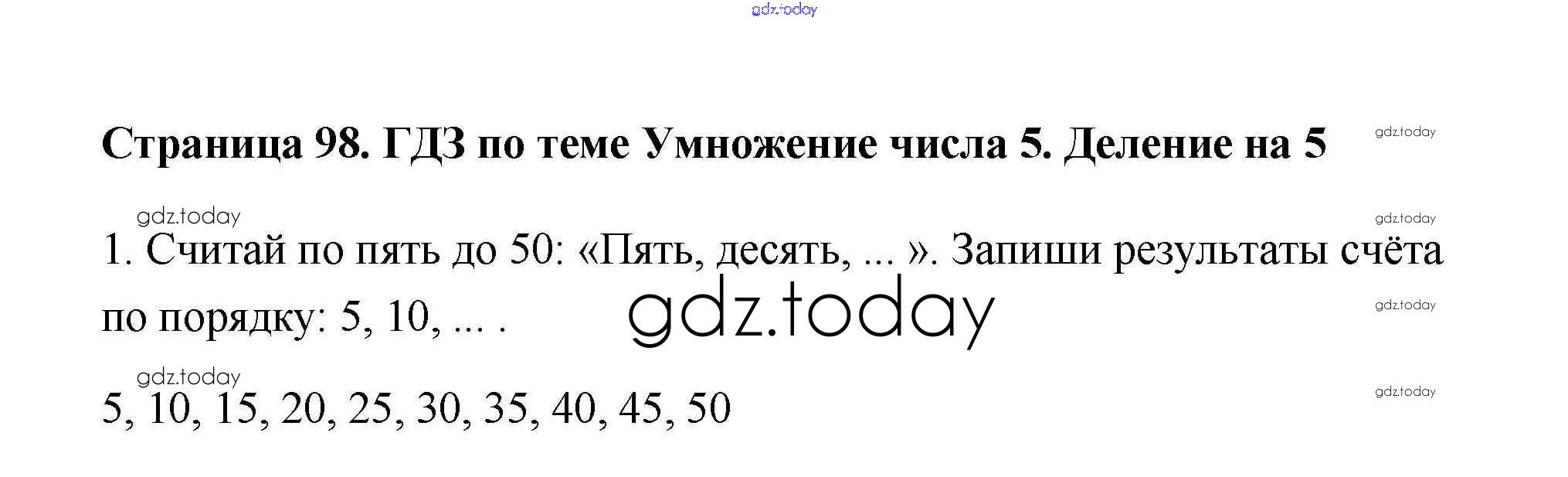 На страницах сайта gdz.today вы найдете учебный и вспомогательный материал, направленный на улучшения знаний школьной программы. ГДЗ - онлайн мир знаний Страница 98 Решение к части 1 1 Учебнику по Математике для 3 класса Дорофеев, Миракова Просвещение 2015