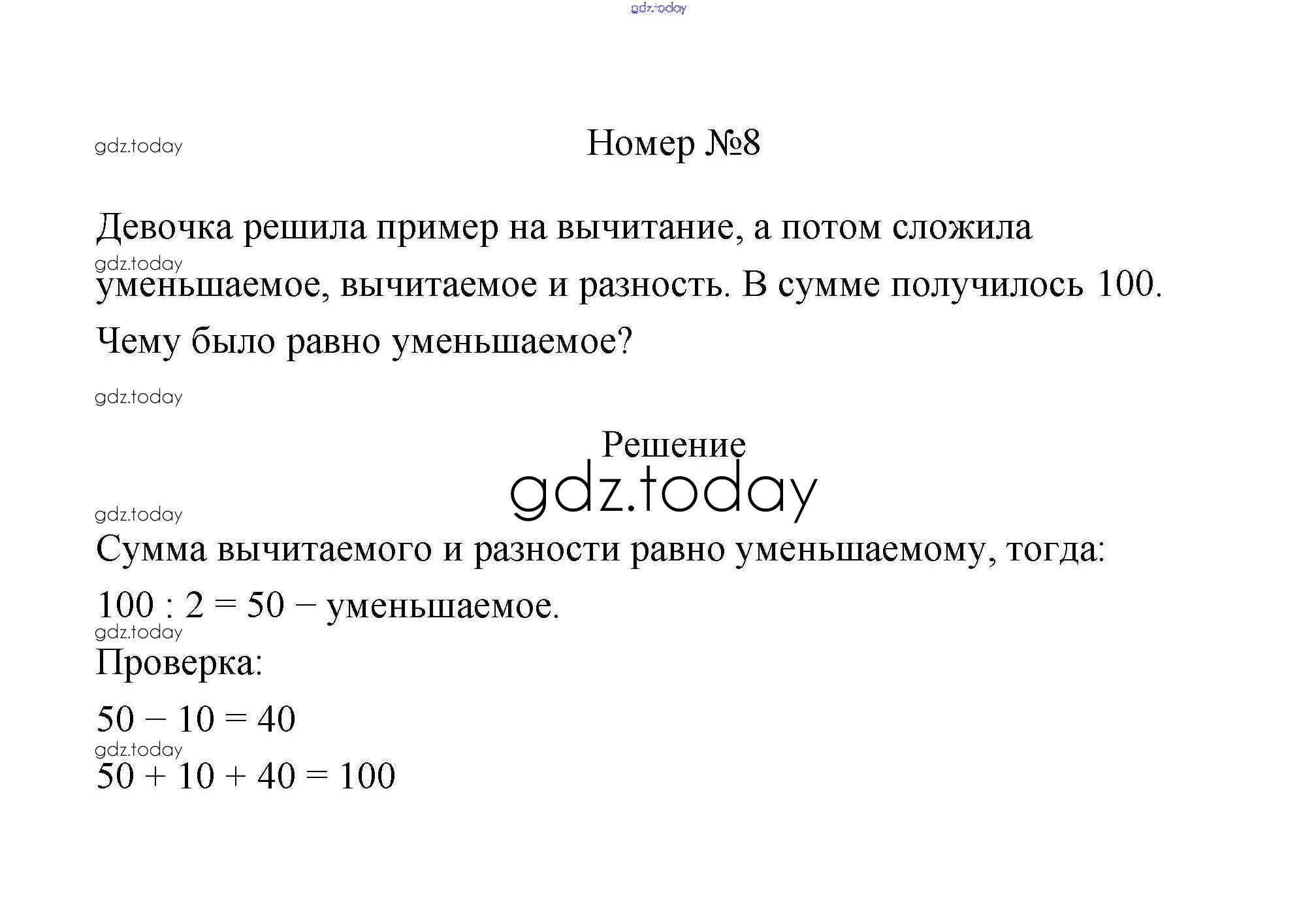 На страницах сайта gdz.today вы найдете учебный и вспомогательный материал, направленный на улучшения знаний школьной программы. ГДЗ - онлайн мир знаний Страница 104 Решение к части 1 8 Учебнику по Математике для 3 класса Дорофеев, Миракова Просвещение 2015