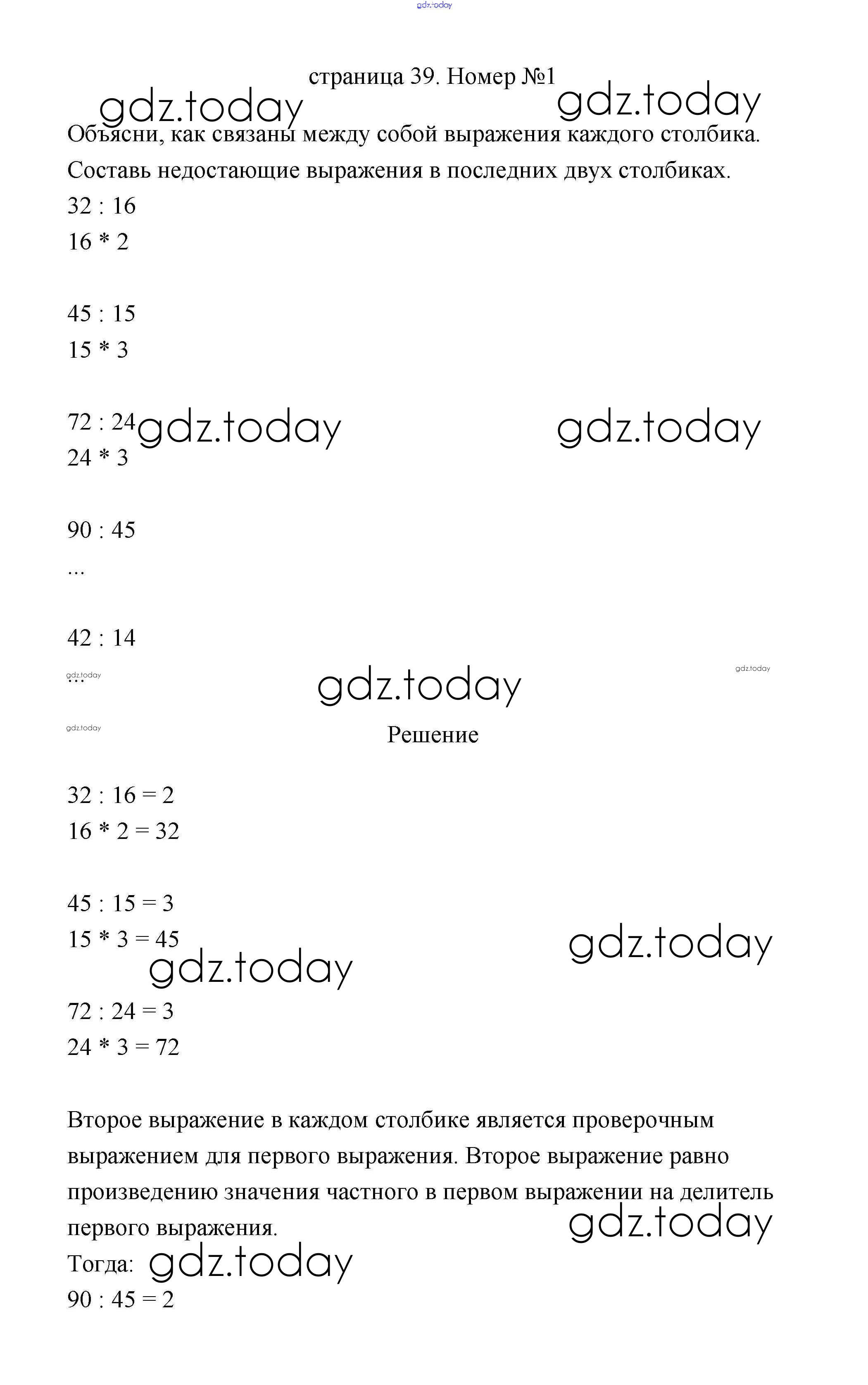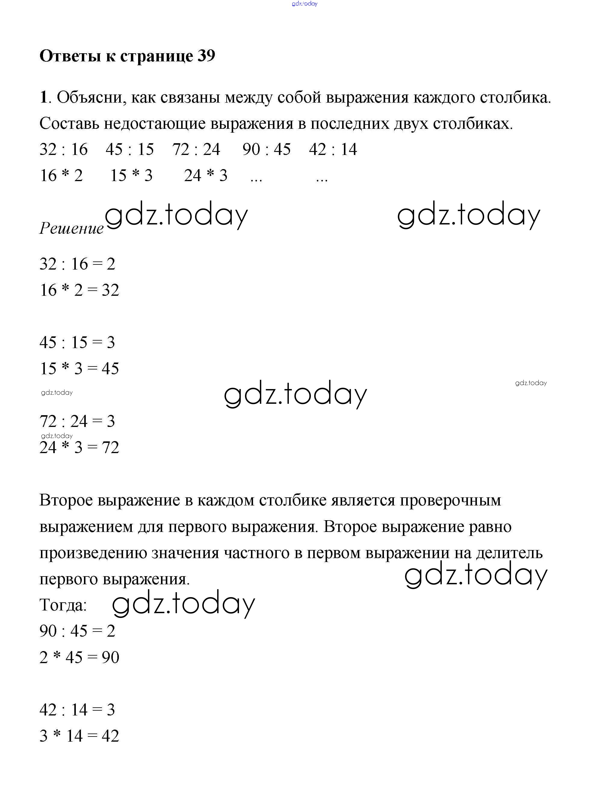 Ответы к Страница 39 Решение к части 2 1 Учебнику по Математике для 3 класса Дорофеев, Миракова Просвещение 2015