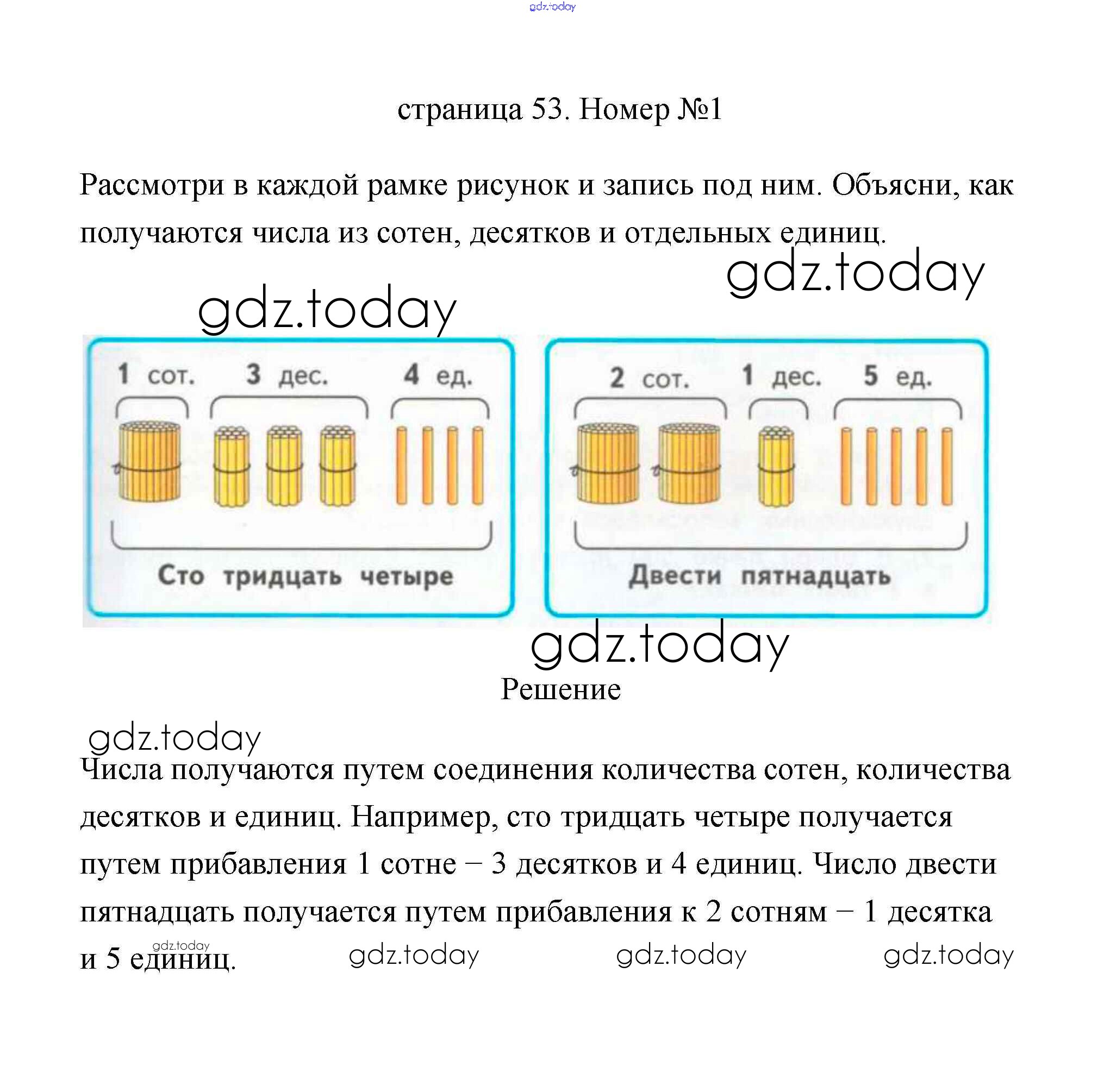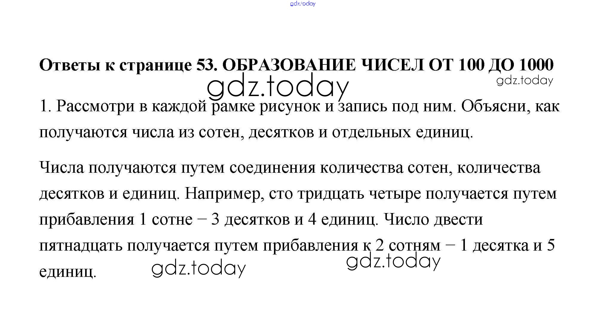 На страницах сайта gdz.today вы найдете учебный и вспомогательный материал, направленный на улучшения знаний школьной программы. ГДЗ - онлайн мир знаний Страница 53 Решение к части 2 1 Учебнику по Математике для 3 класса Дорофеев, Миракова Просвещение 2015