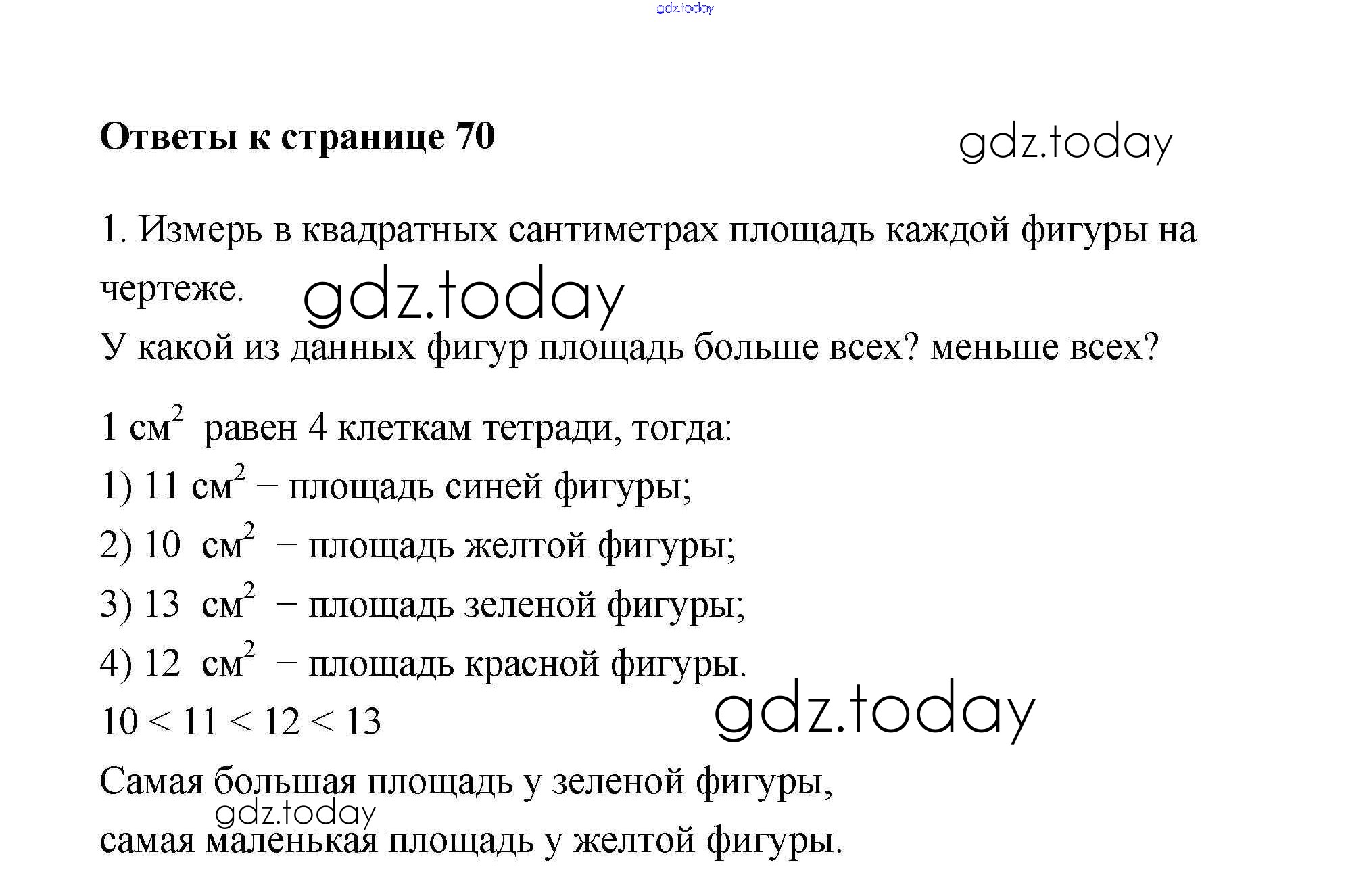 На страницах сайта gdz.today вы найдете учебный и вспомогательный материал, направленный на улучшения знаний школьной программы. ГДЗ - онлайн мир знаний Страница 70 Решение к части 2 1 Учебнику по Математике для 3 класса Дорофеев, Миракова Просвещение 2015