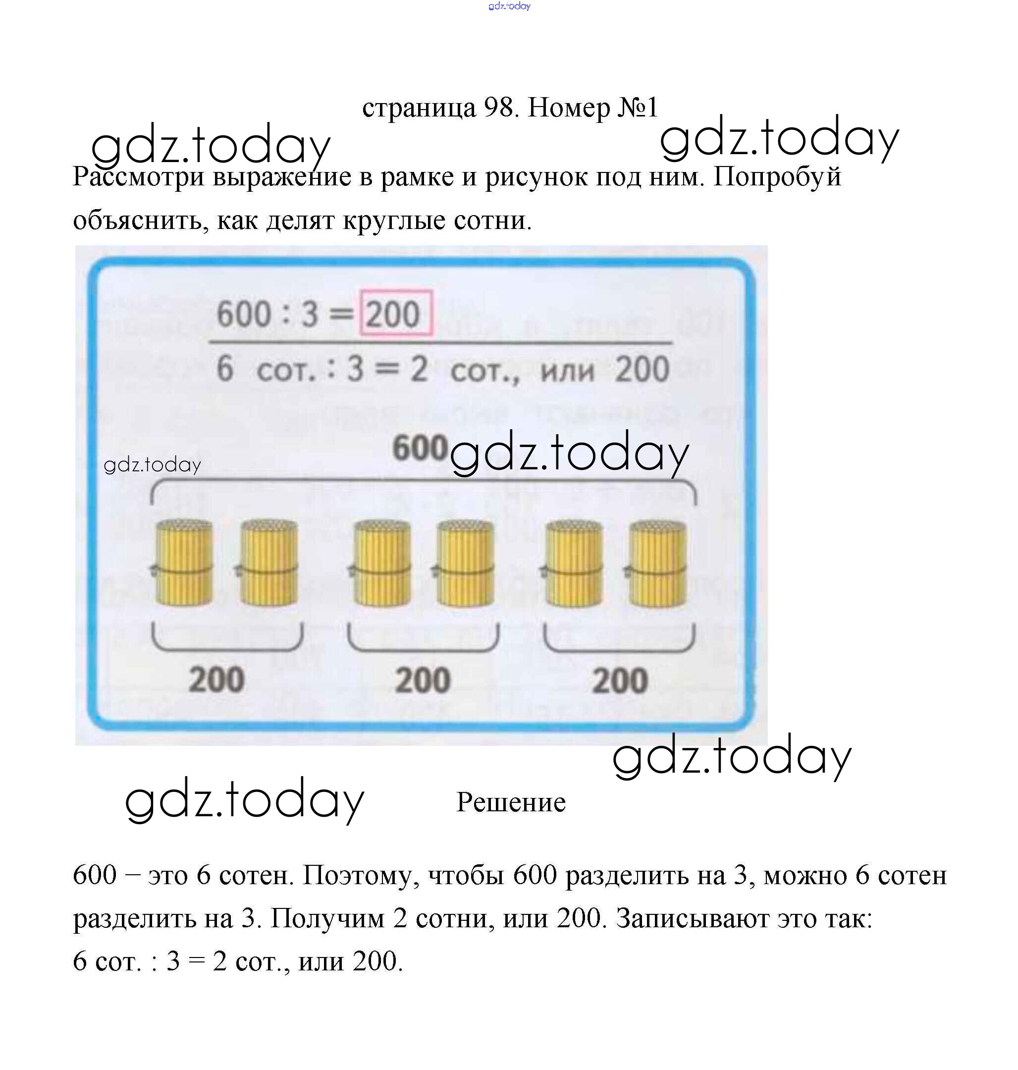 На страницах сайта gdz.today вы найдете учебный и вспомогательный материал, направленный на улучшения знаний школьной программы. ГДЗ - онлайн мир знаний Страница 98 Решение к части 2 1 Учебнику по Математике для 3 класса Дорофеев, Миракова Просвещение 2015