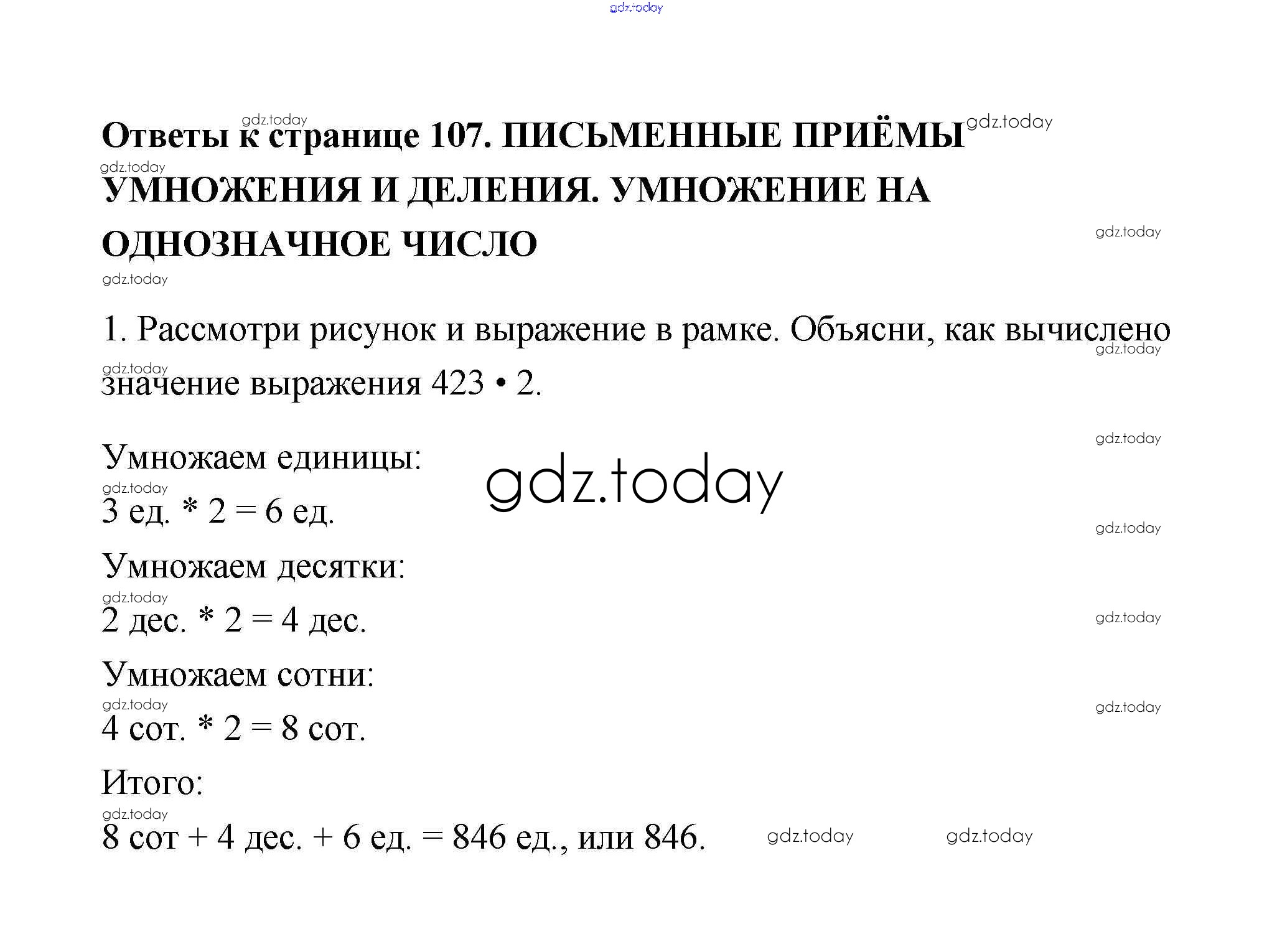 На страницах сайта gdz.today вы найдете учебный и вспомогательный материал, направленный на улучшения знаний школьной программы. ГДЗ - онлайн мир знаний Страница 107 Решение к части 2 1 Учебнику по Математике для 3 класса Дорофеев, Миракова Просвещение 2015