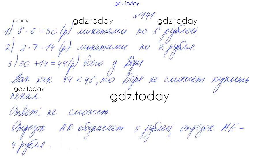 На страницах сайта gdz.today вы найдете учебный и вспомогательный материал, направленный на улучшения знаний школьной программы. ГДЗ - онлайн мир знаний Решение к части 1 (упражнения) 141 Учебнику по Математике для 3 класса Истомина Ассоциация 21 век Гармония 2014