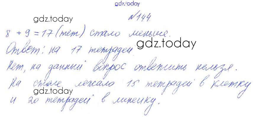 На страницах сайта gdz.today вы найдете учебный и вспомогательный материал, направленный на улучшения знаний школьной программы. ГДЗ - онлайн мир знаний Решение к части 1 (упражнения) 144 Учебнику по Математике для 3 класса Истомина Ассоциация 21 век Гармония 2014