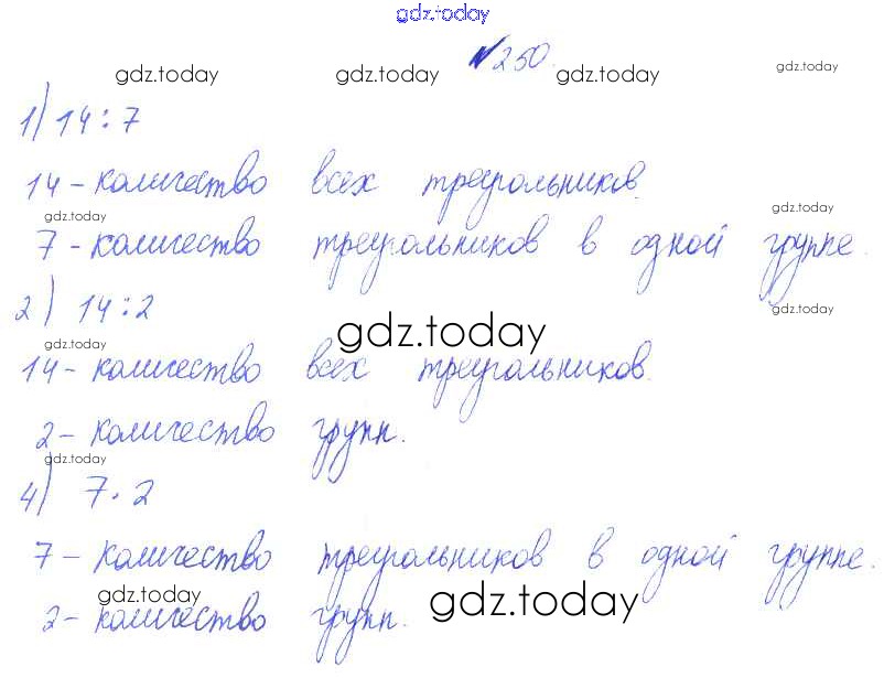 На страницах сайта gdz.today вы найдете учебный и вспомогательный материал, направленный на улучшения знаний школьной программы. ГДЗ - онлайн мир знаний Решение к части 1 (упражнения) 250 Учебнику по Математике для 3 класса Истомина Ассоциация 21 век Гармония 2014