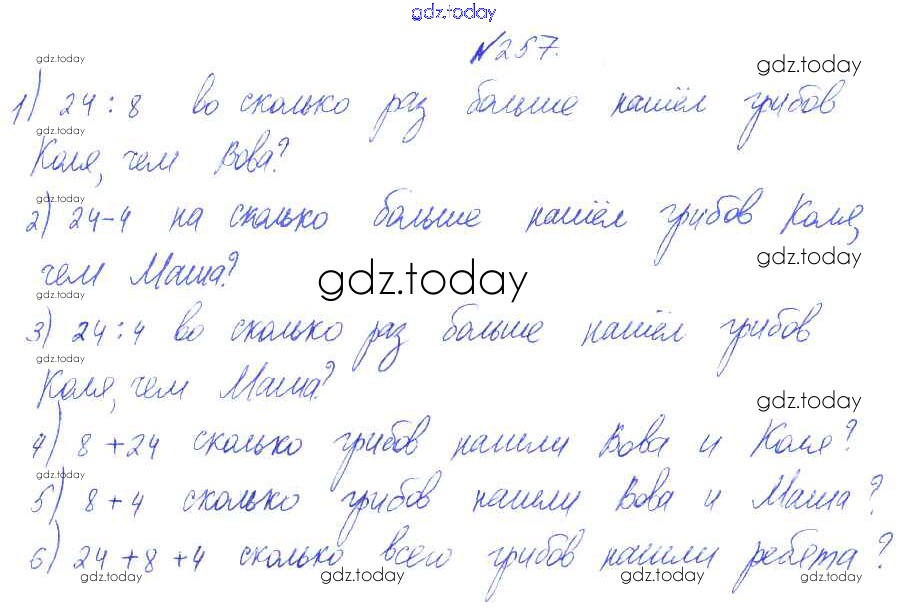 На страницах сайта gdz.today вы найдете учебный и вспомогательный материал, направленный на улучшения знаний школьной программы. ГДЗ - онлайн мир знаний Решение к части 1 (упражнения) 257 Учебнику по Математике для 3 класса Истомина Ассоциация 21 век Гармония 2014