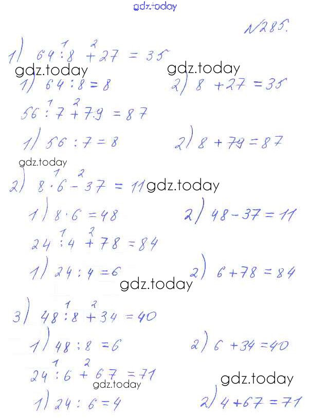 На страницах сайта gdz.today вы найдете учебный и вспомогательный материал, направленный на улучшения знаний школьной программы. ГДЗ - онлайн мир знаний Решение к части 1 (упражнения) 285 Учебнику по Математике для 3 класса Истомина Ассоциация 21 век Гармония 2014