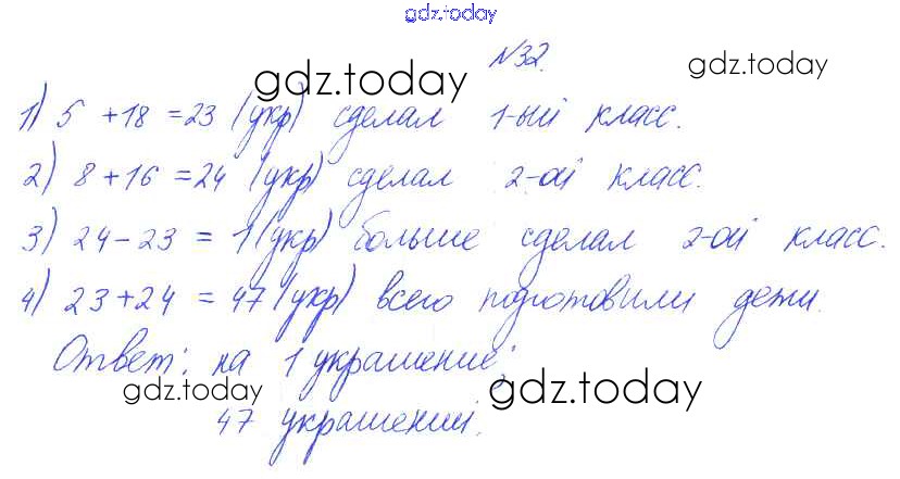 На страницах сайта gdz.today вы найдете учебный и вспомогательный материал, направленный на улучшения знаний школьной программы. ГДЗ - онлайн мир знаний Решение к части 1 (упражнения) 32 Учебнику по Математике для 3 класса Истомина Ассоциация 21 век Гармония 2014