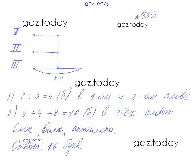 На страницах сайта gdz.today вы найдете учебный и вспомогательный материал, направленный на улучшения знаний школьной программы. ГДЗ - онлайн мир знаний Решение к части 1 (упражнения) 330 Учебнику по Математике для 3 класса Истомина Ассоциация 21 век Гармония 2014