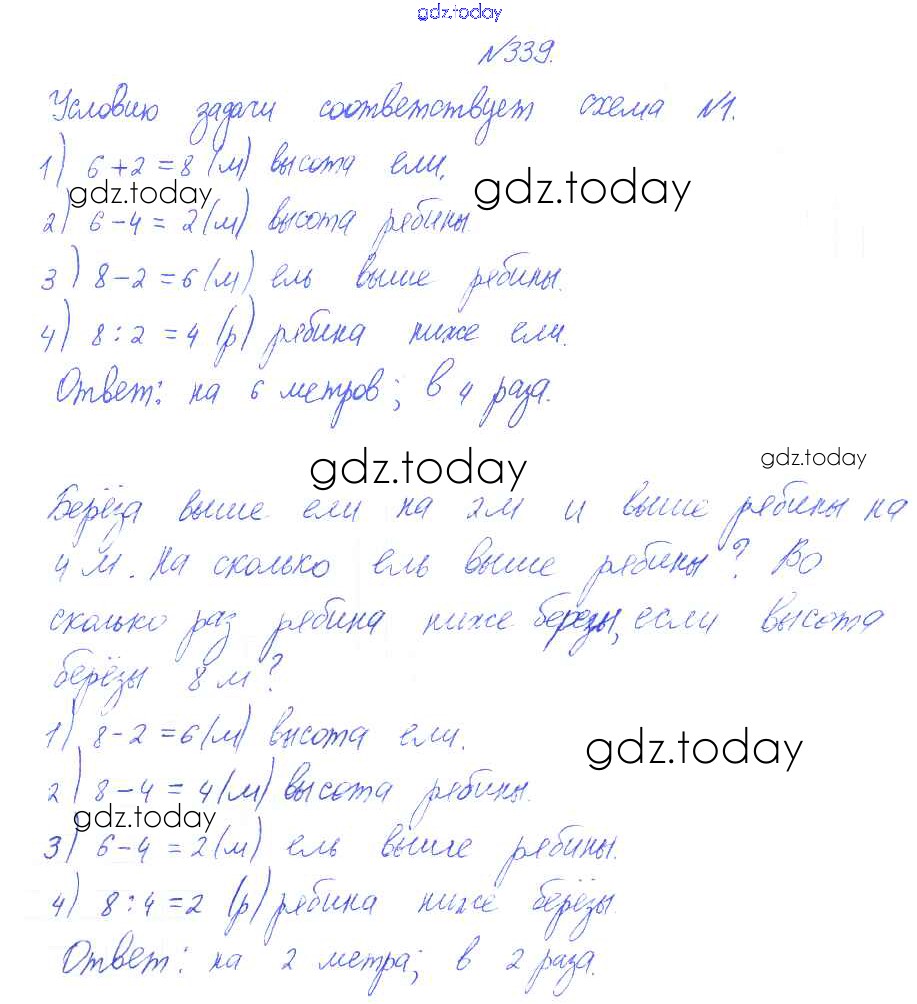 На страницах сайта gdz.today вы найдете учебный и вспомогательный материал, направленный на улучшения знаний школьной программы. ГДЗ - онлайн мир знаний Решение к части 1 (упражнения) 339 Учебнику по Математике для 3 класса Истомина Ассоциация 21 век Гармония 2014