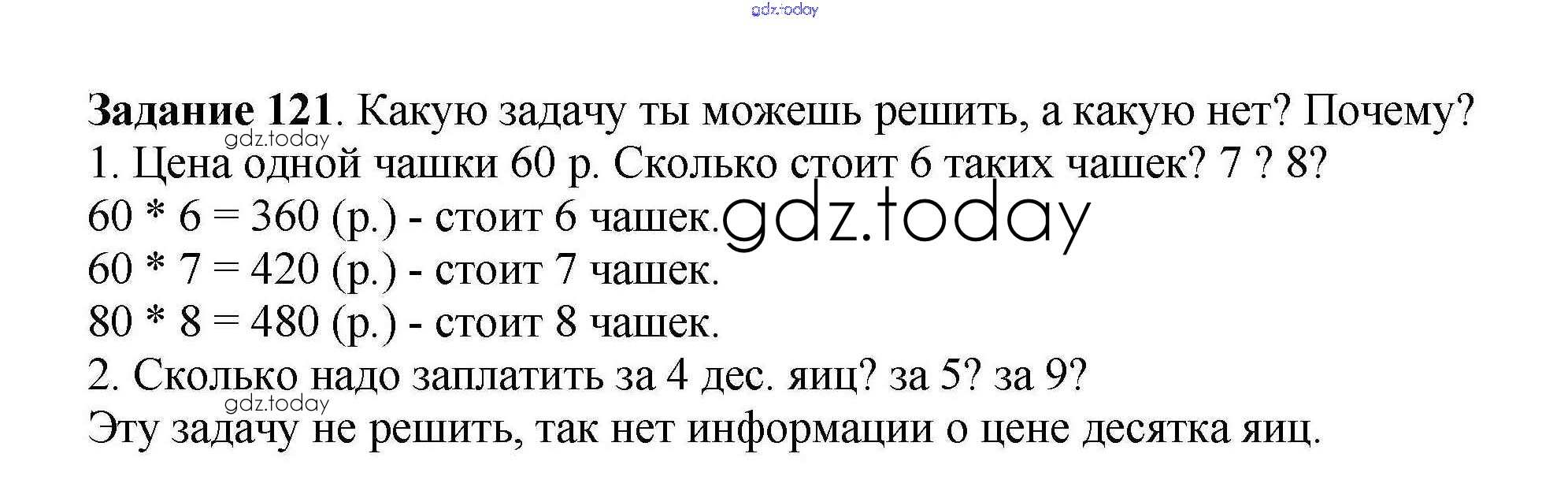 На страницах сайта gdz.today вы найдете учебный и вспомогательный материал, направленный на улучшения знаний школьной программы. ГДЗ - онлайн мир знаний Решение к части 2 (упражнения) 121 Учебнику по Математике для 3 класса Истомина Ассоциация 21 век Гармония 2014