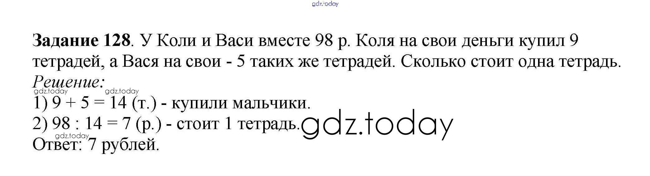 На страницах сайта gdz.today вы найдете учебный и вспомогательный материал, направленный на улучшения знаний школьной программы. ГДЗ - онлайн мир знаний Решение к части 2 (упражнения) 128 Учебнику по Математике для 3 класса Истомина Ассоциация 21 век Гармония 2014
