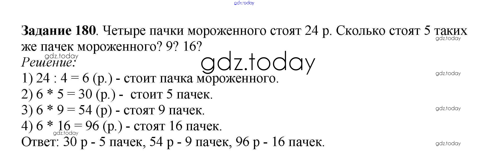 На страницах сайта gdz.today вы найдете учебный и вспомогательный материал, направленный на улучшения знаний школьной программы. ГДЗ - онлайн мир знаний Решение к части 2 (упражнения) 180 Учебнику по Математике для 3 класса Истомина Ассоциация 21 век Гармония 2014