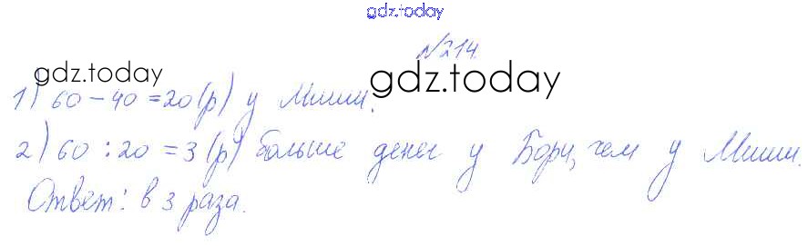 На страницах сайта gdz.today вы найдете учебный и вспомогательный материал, направленный на улучшения знаний школьной программы. ГДЗ - онлайн мир знаний Решение к части 2 (упражнения) 214 Учебнику по Математике для 3 класса Истомина Ассоциация 21 век Гармония 2014