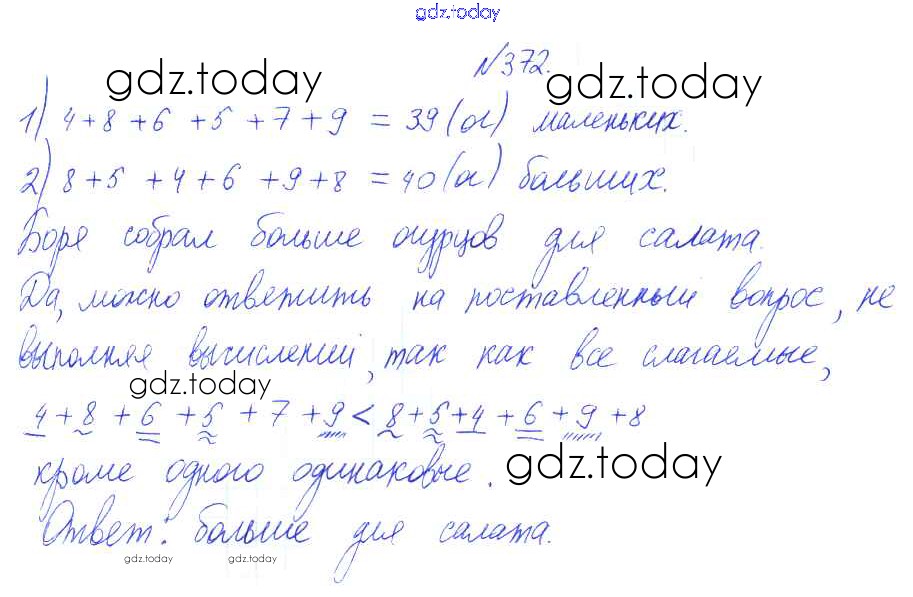 На страницах сайта gdz.today вы найдете учебный и вспомогательный материал, направленный на улучшения знаний школьной программы. ГДЗ - онлайн мир знаний Решение к части 2 (упражнения) 372 Учебнику по Математике для 3 класса Истомина Ассоциация 21 век Гармония 2014