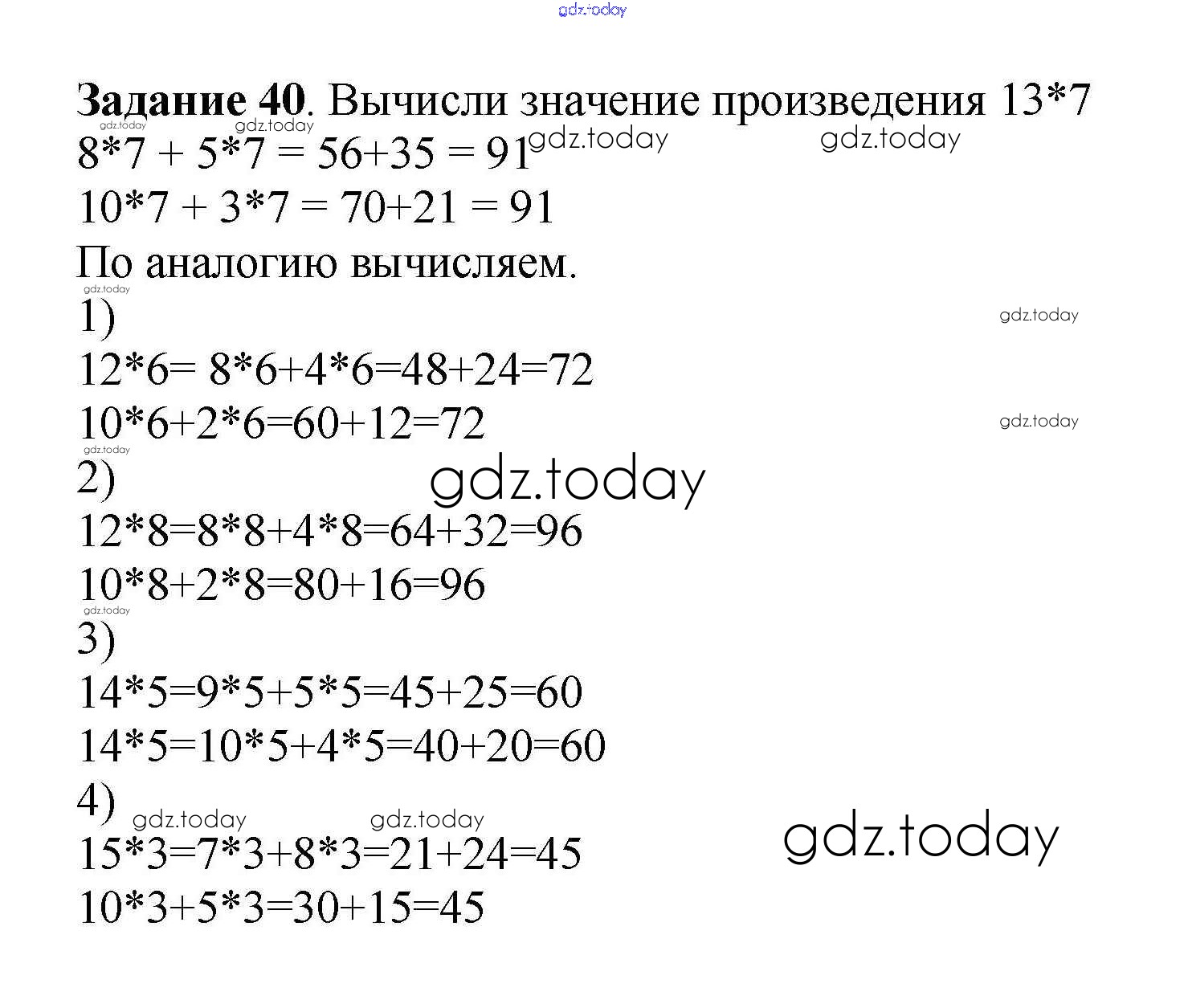 На страницах сайта gdz.today вы найдете учебный и вспомогательный материал, направленный на улучшения знаний школьной программы. ГДЗ - онлайн мир знаний Решение к части 2 (упражнения) 40 Учебнику по Математике для 3 класса Истомина Ассоциация 21 век Гармония 2014