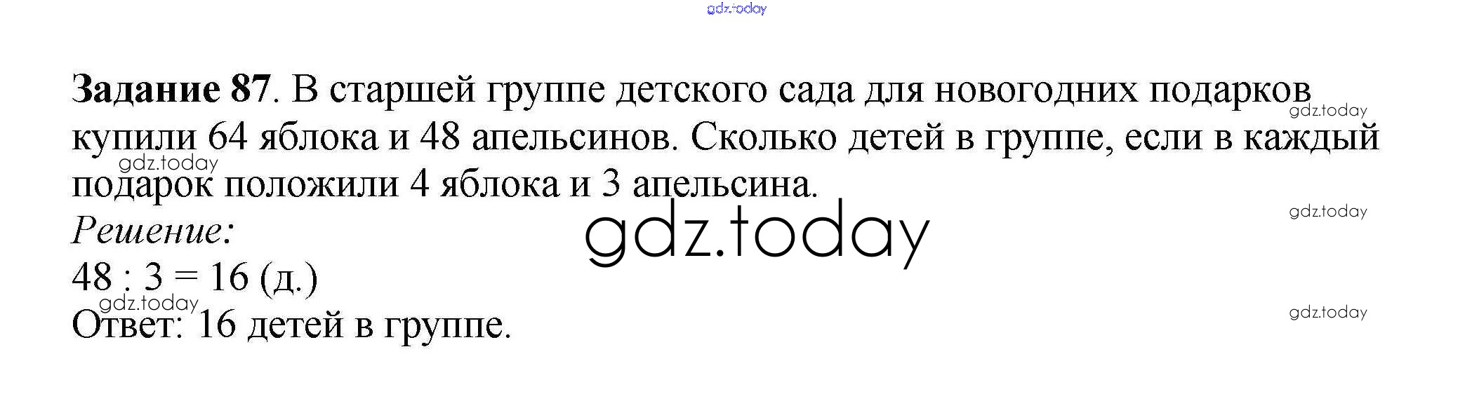 На страницах сайта gdz.today вы найдете учебный и вспомогательный материал, направленный на улучшения знаний школьной программы. ГДЗ - онлайн мир знаний Решение к части 2 (упражнения) 87 Учебнику по Математике для 3 класса Истомина Ассоциация 21 век Гармония 2014