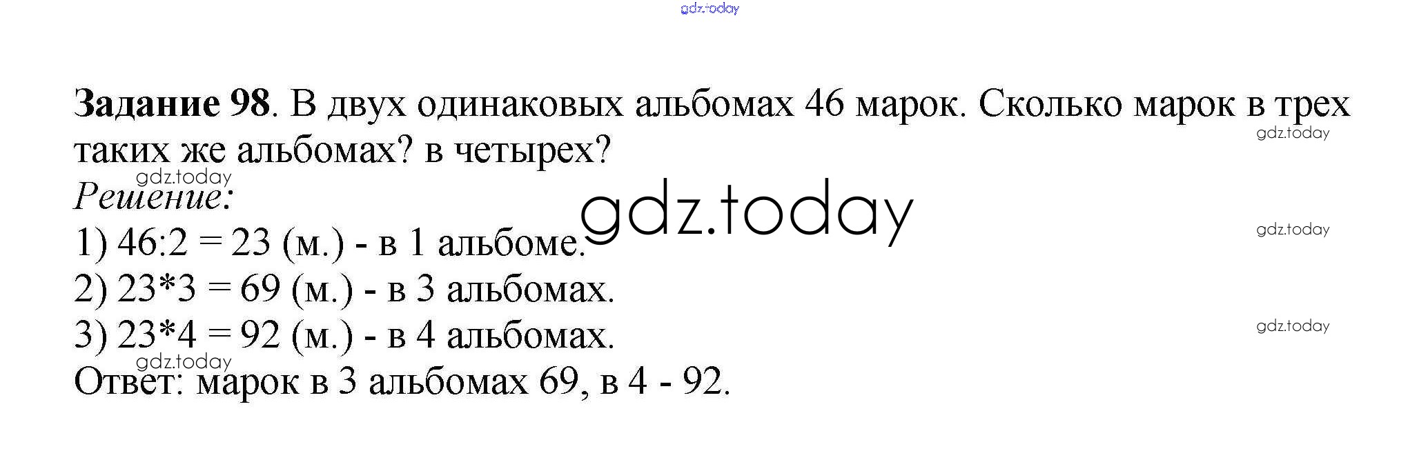 На страницах сайта gdz.today вы найдете учебный и вспомогательный материал, направленный на улучшения знаний школьной программы. ГДЗ - онлайн мир знаний Решение к части 2 (упражнения) 98 Учебнику по Математике для 3 класса Истомина Ассоциация 21 век Гармония 2014