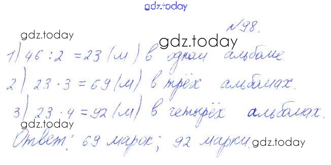 Ответы к Решение к части 2 (упражнения) 98 Учебнику по Математике для 3 класса Истомина Ассоциация 21 век Гармония 2014