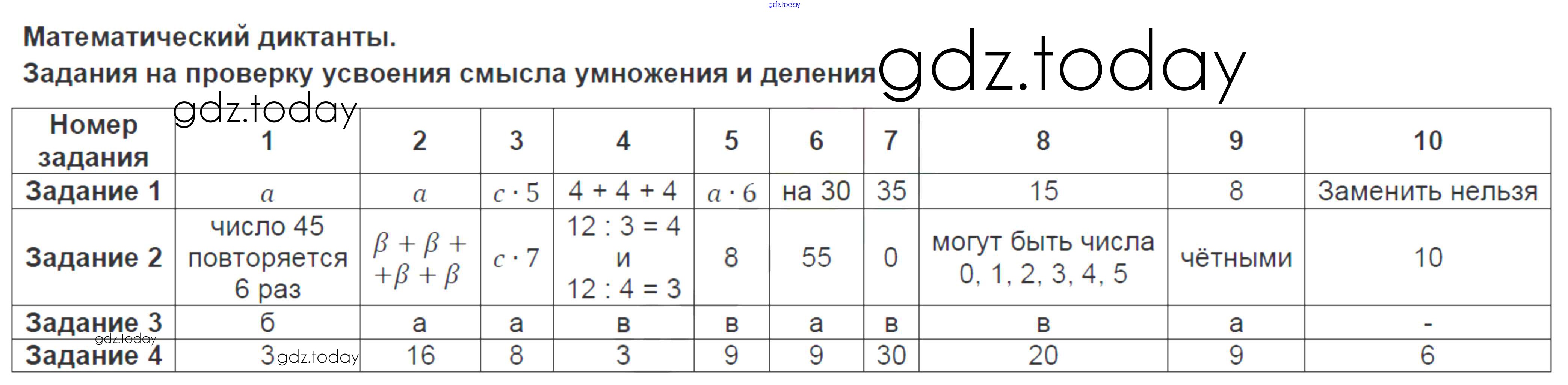 На страницах сайта gdz.today вы найдете учебный и вспомогательный материал, направленный на улучшения знаний школьной программы. ГДЗ - онлайн мир знаний Решение к математическим диктантам 2 Контрольно-измерительным материалам (КИМ) по Математике для 3 класса Ситникова ВАКО 2017