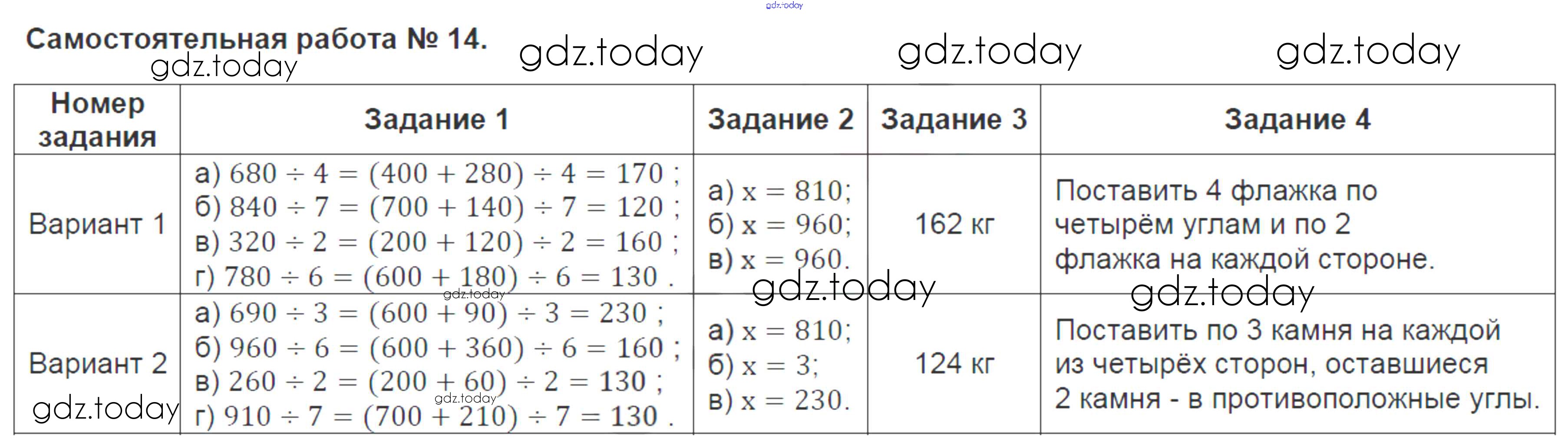 Ответы к Решение к самостоятельным работам 14 Контрольно-измерительным материалам (КИМ) по Математике для 3 класса Ситникова ВАКО 2017