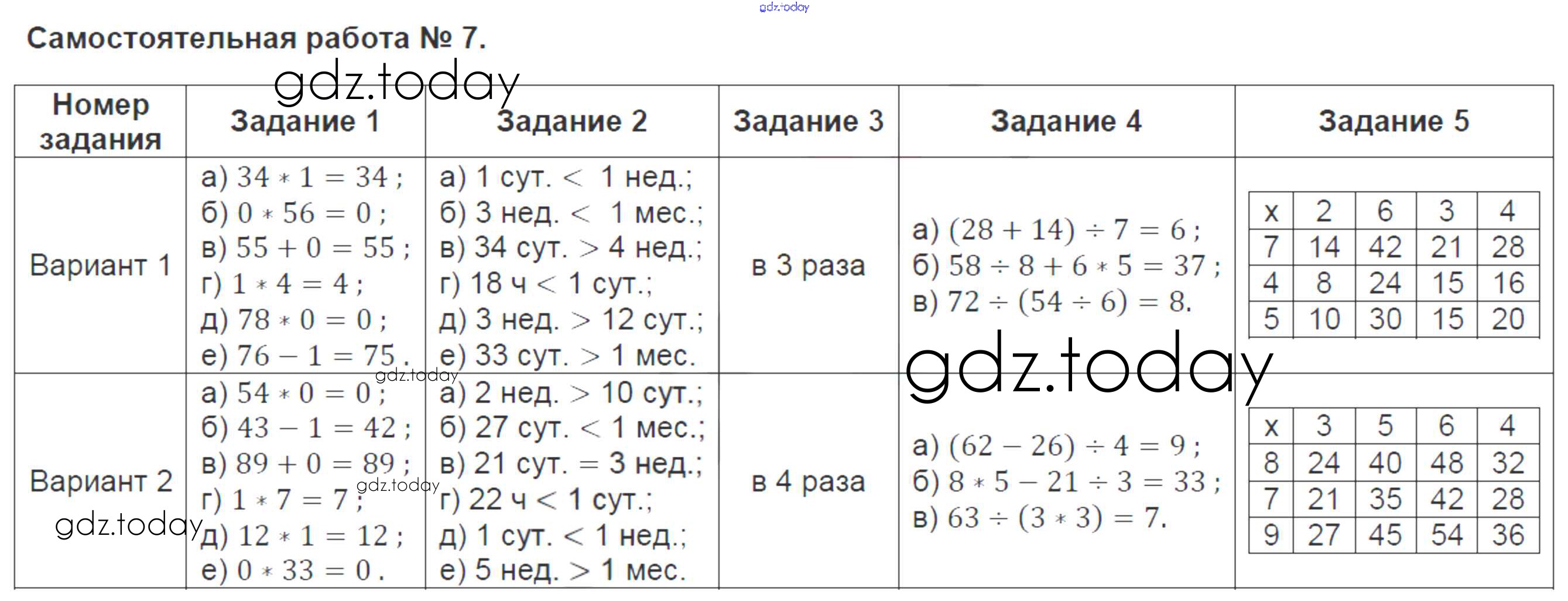 На страницах сайта gdz.today вы найдете учебный и вспомогательный материал, направленный на улучшения знаний школьной программы. ГДЗ - онлайн мир знаний Решение к самостоятельным работам 7 Контрольно-измерительным материалам (КИМ) по Математике для 3 класса Ситникова ВАКО 2017