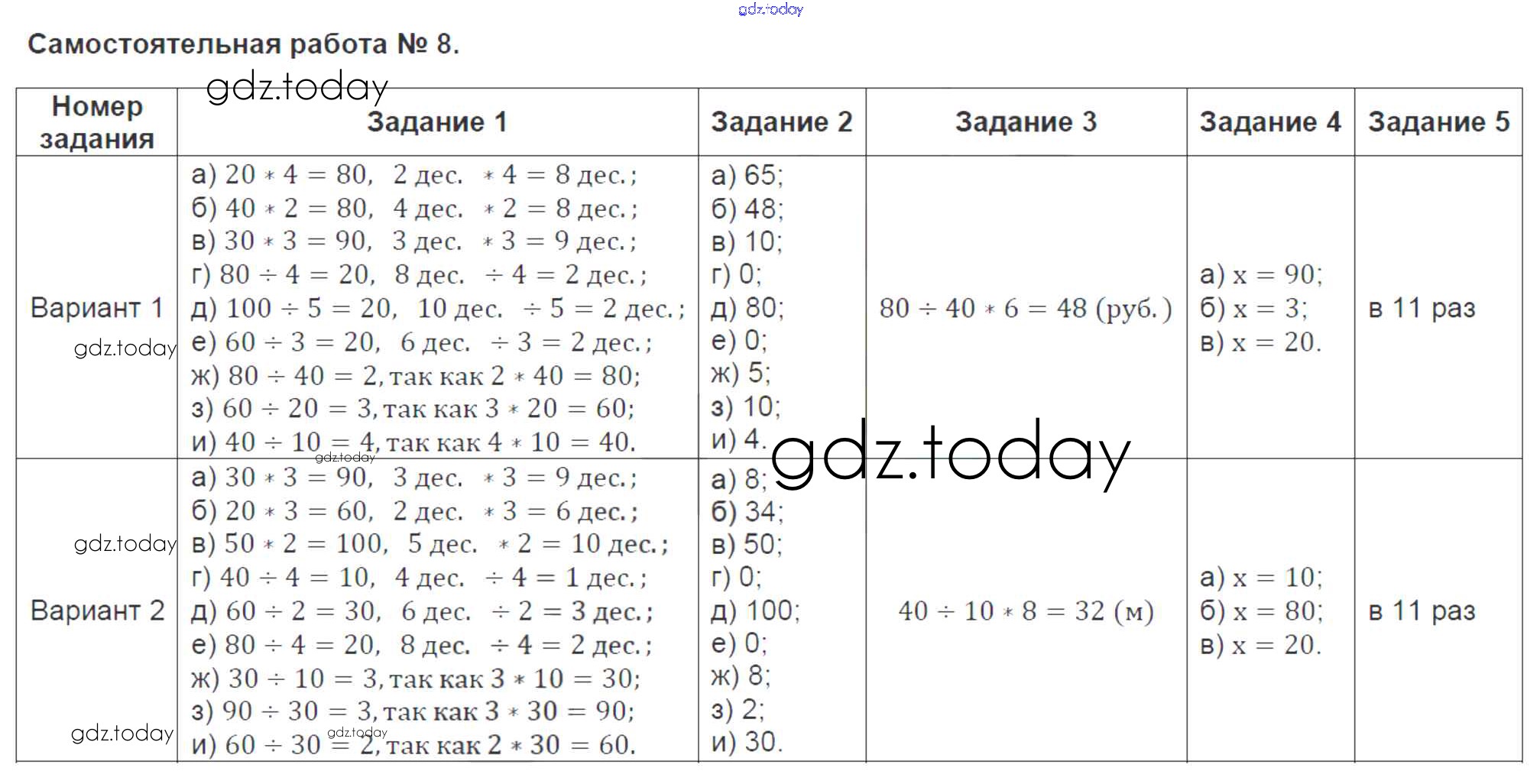 На страницах сайта gdz.today вы найдете учебный и вспомогательный материал, направленный на улучшения знаний школьной программы. ГДЗ - онлайн мир знаний Решение к самостоятельным работам 8 Контрольно-измерительным материалам (КИМ) по Математике для 3 класса Ситникова ВАКО 2017