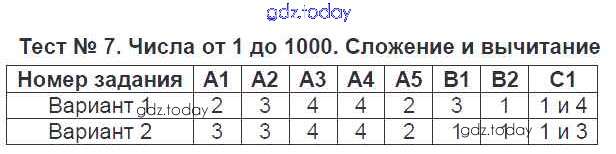 Ответы к Решение к тестам 7 Контрольно-измерительным материалам (КИМ) по Математике для 3 класса Ситникова ВАКО 2017
