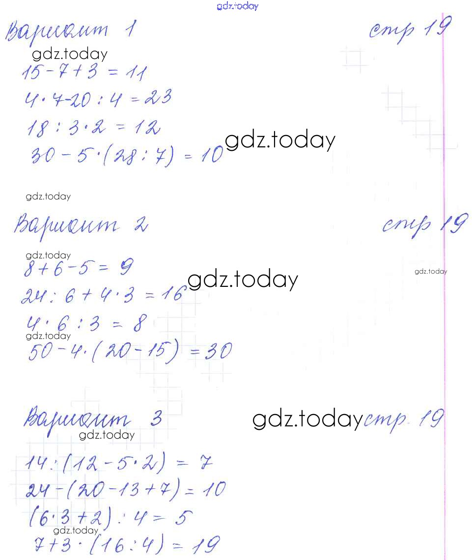 На страницах сайта gdz.today вы найдете учебный и вспомогательный материал, направленный на улучшения знаний школьной программы. ГДЗ - онлайн мир знаний Решение к части 1 (страницы) 19 Контрольным работам по Математике для 3 класса Рудницкая Экзамен УМК 2017