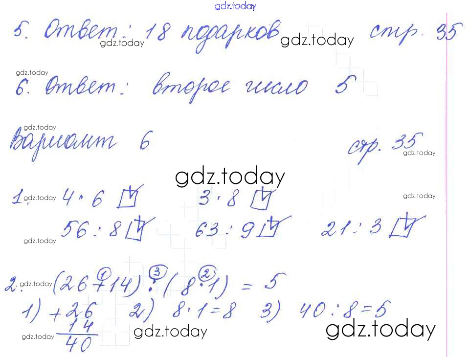 На страницах сайта gdz.today вы найдете учебный и вспомогательный материал, направленный на улучшения знаний школьной программы. ГДЗ - онлайн мир знаний Решение к части 1 (страницы) 35 Контрольным работам по Математике для 3 класса Рудницкая Экзамен УМК 2017