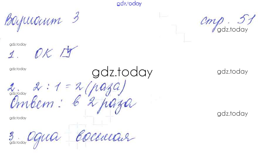 На страницах сайта gdz.today вы найдете учебный и вспомогательный материал, направленный на улучшения знаний школьной программы. ГДЗ - онлайн мир знаний Решение к части 1 (страницы) 51 Контрольным работам по Математике для 3 класса Рудницкая Экзамен УМК 2017