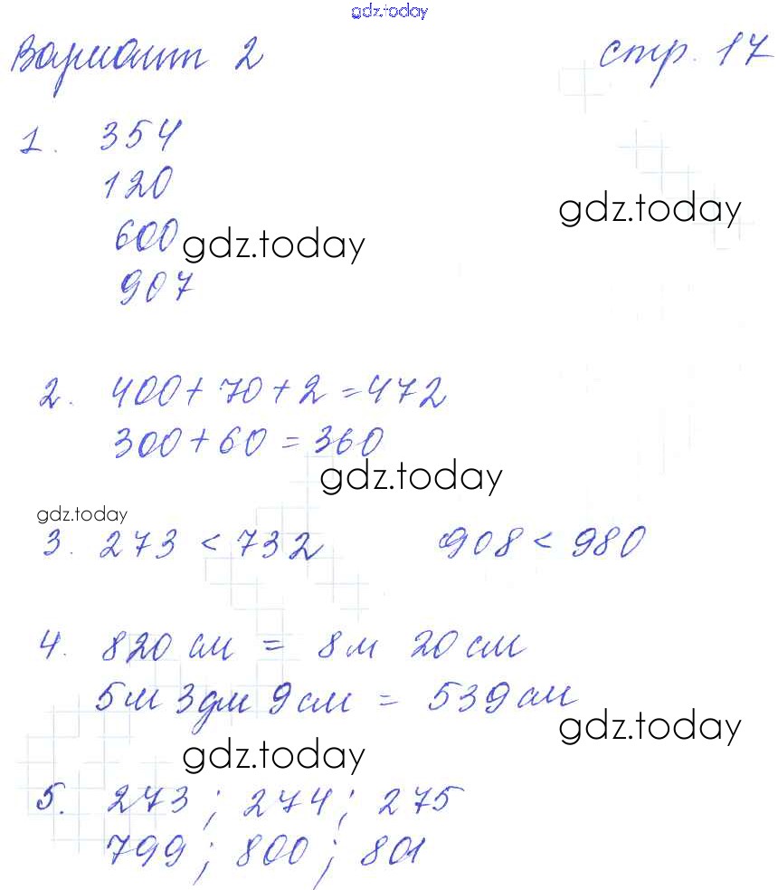 На страницах сайта gdz.today вы найдете учебный и вспомогательный материал, направленный на улучшения знаний школьной программы. ГДЗ - онлайн мир знаний Решение к части 2 (страницы) 17 Контрольным работам по Математике для 3 класса Рудницкая Экзамен УМК 2017